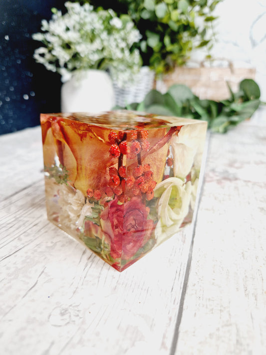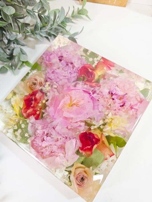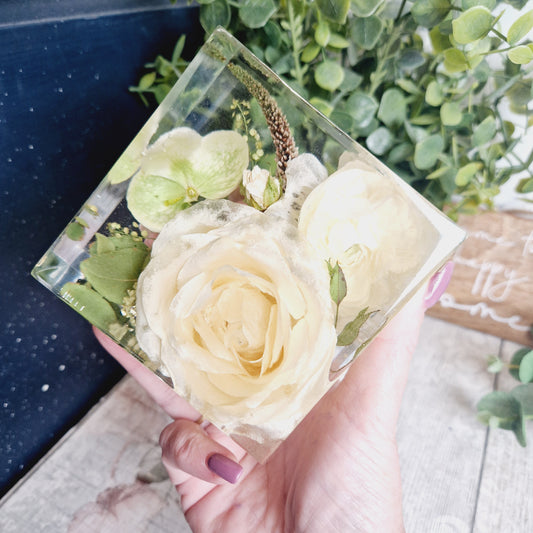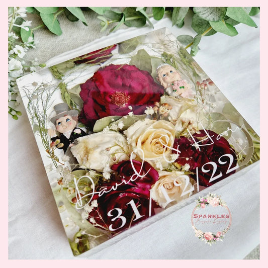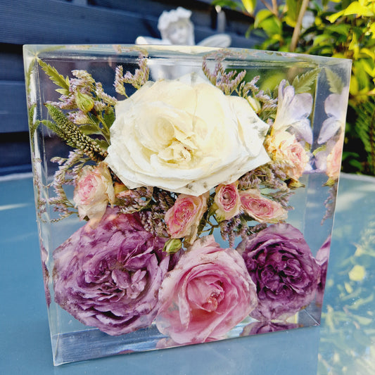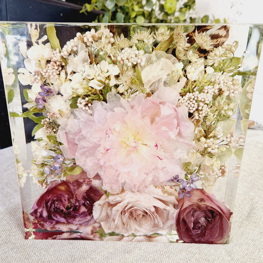 25cm Flower Preservation square block, wedding flowers or memorial flowers preserved.