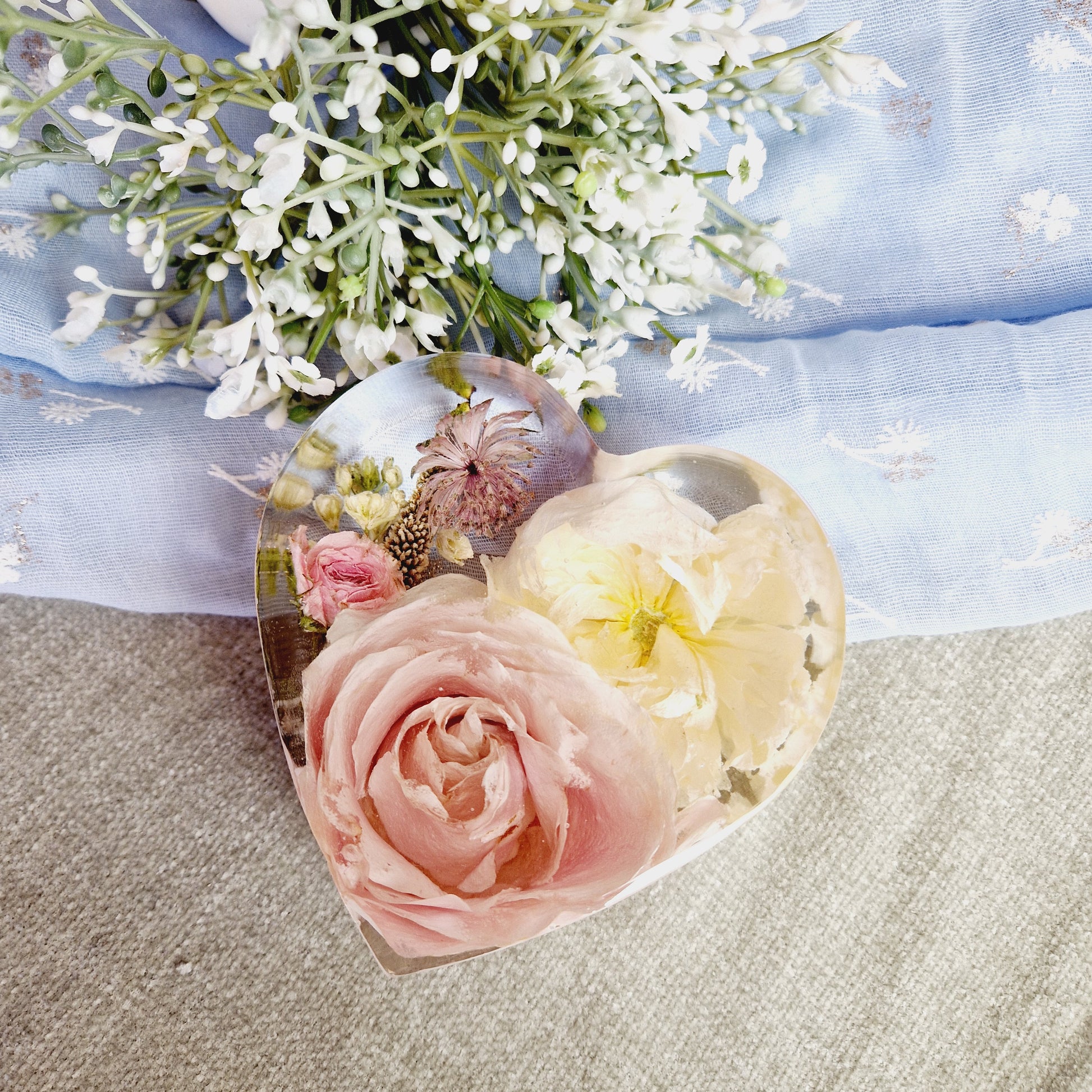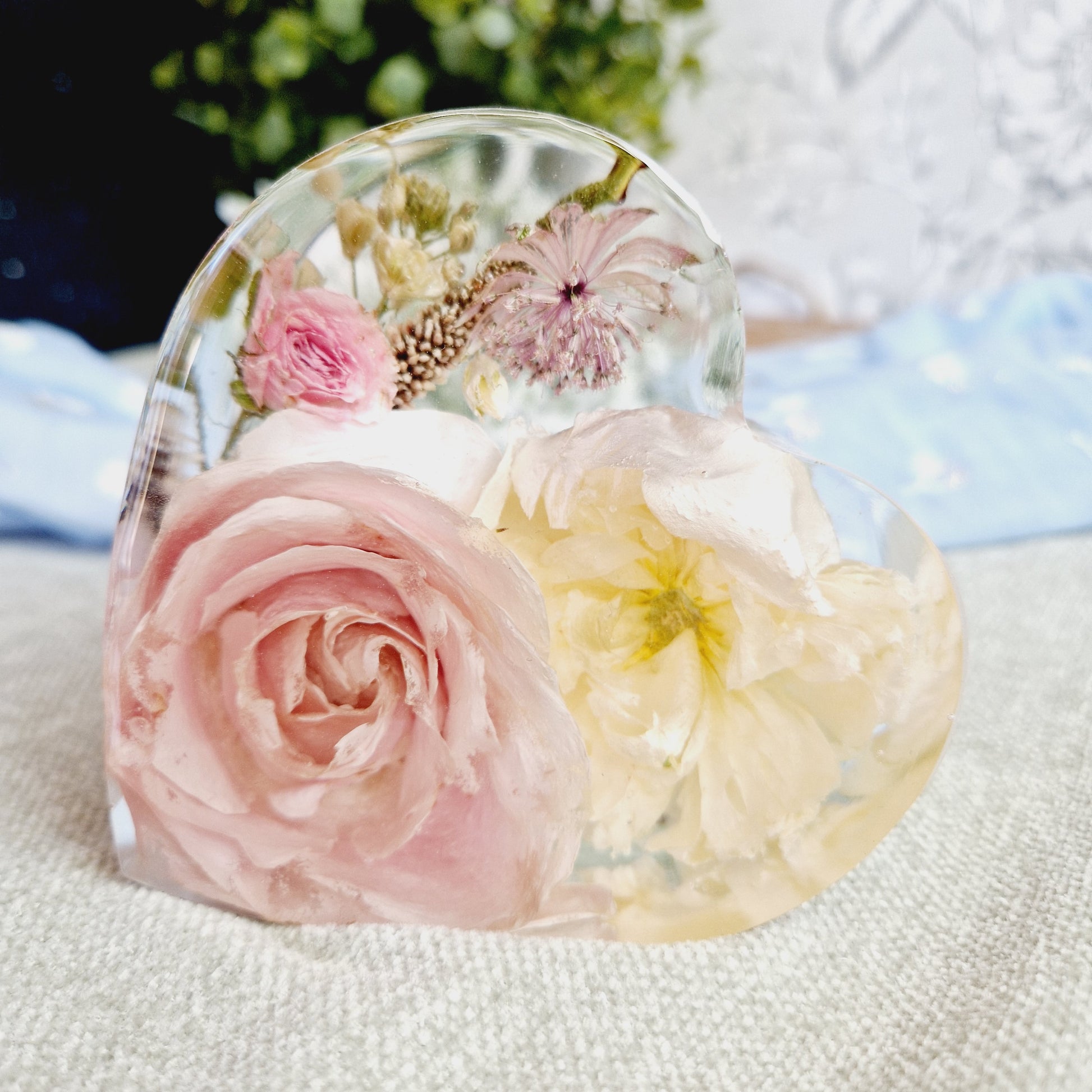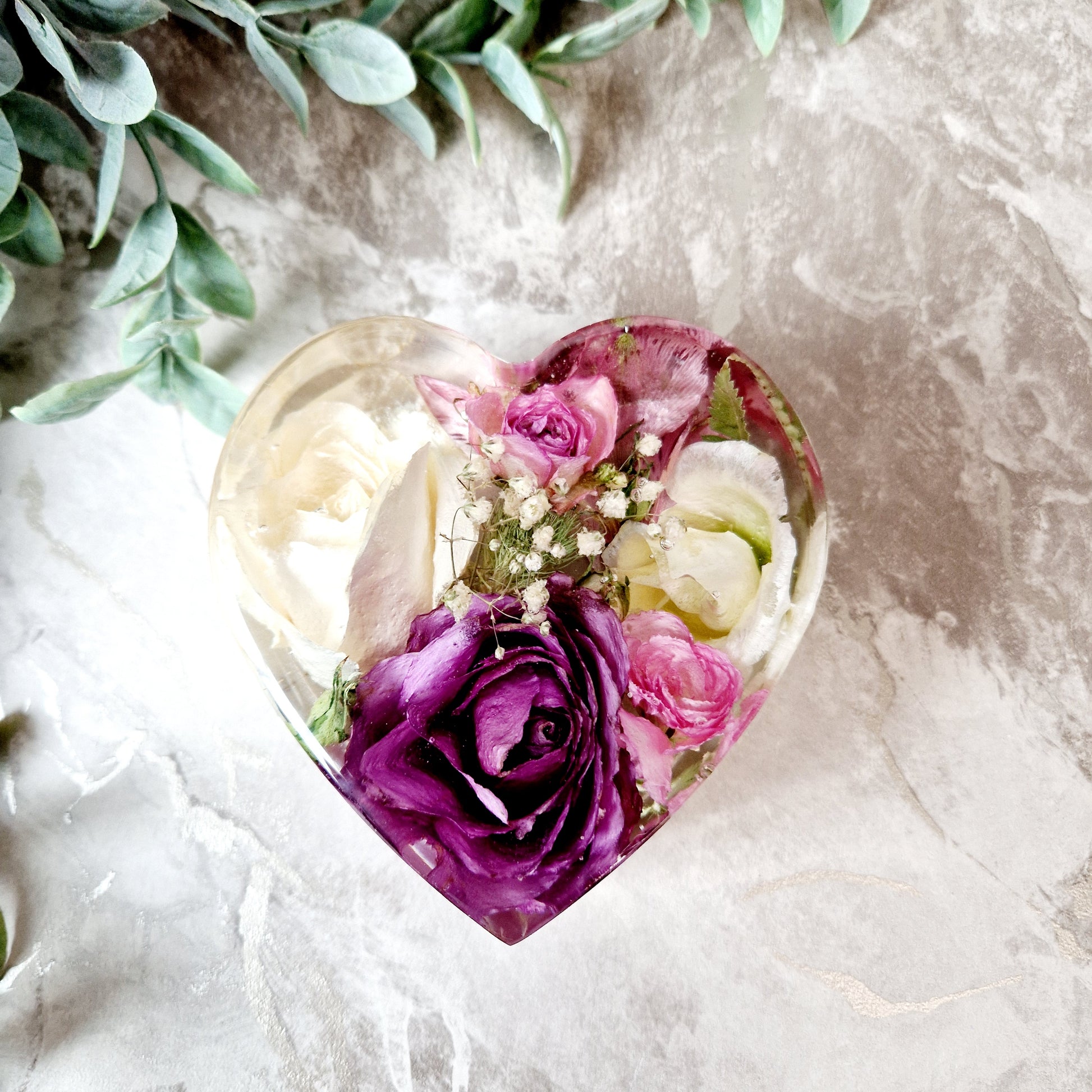 This listing is for a 10cm flower preservation heart made from epoxy resin.