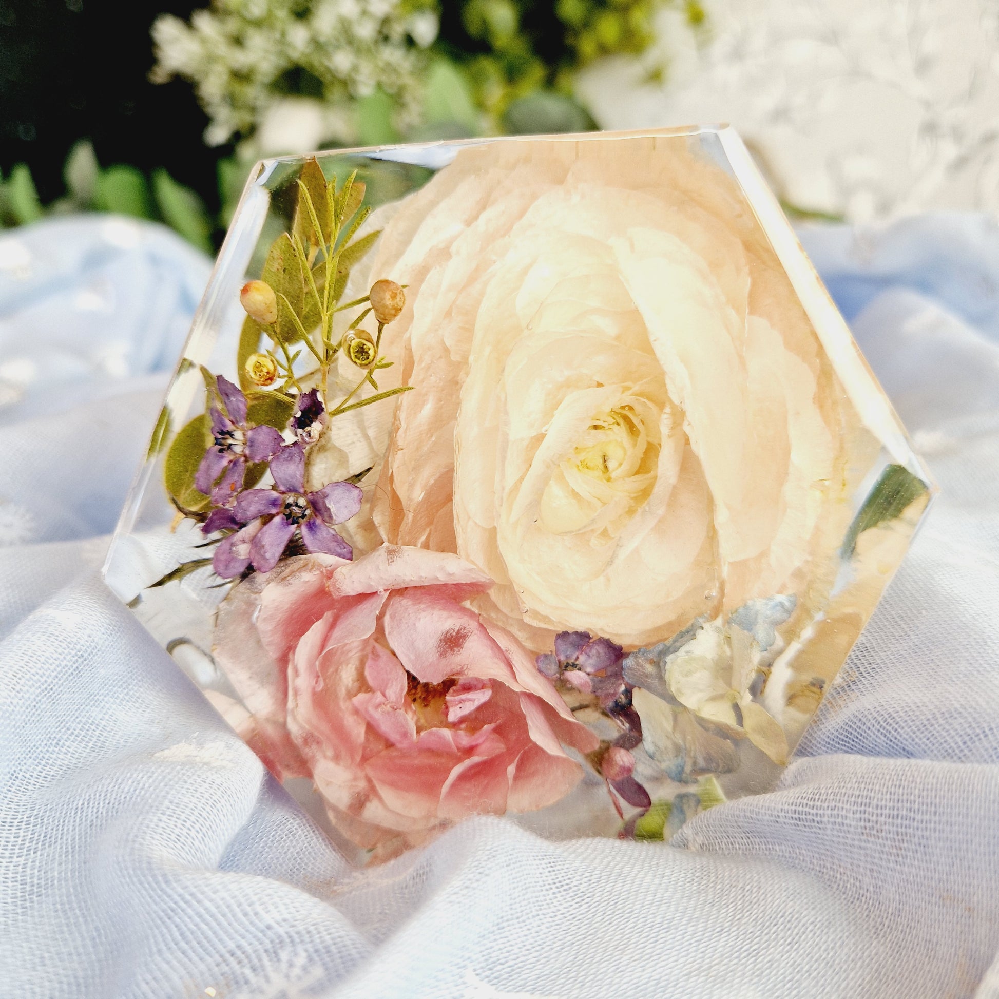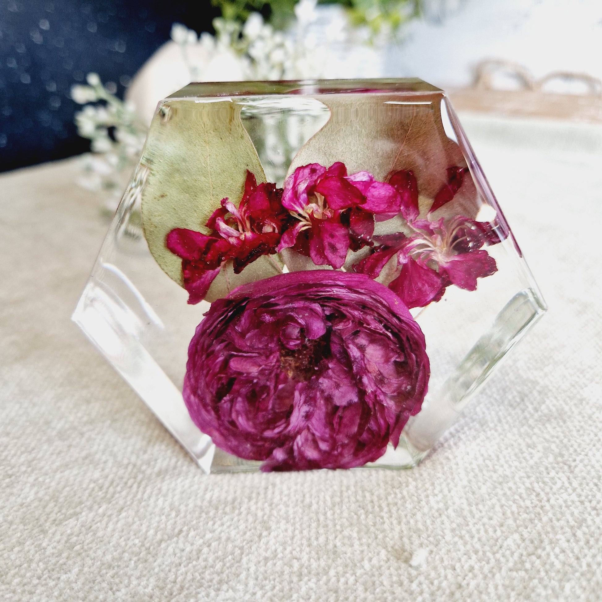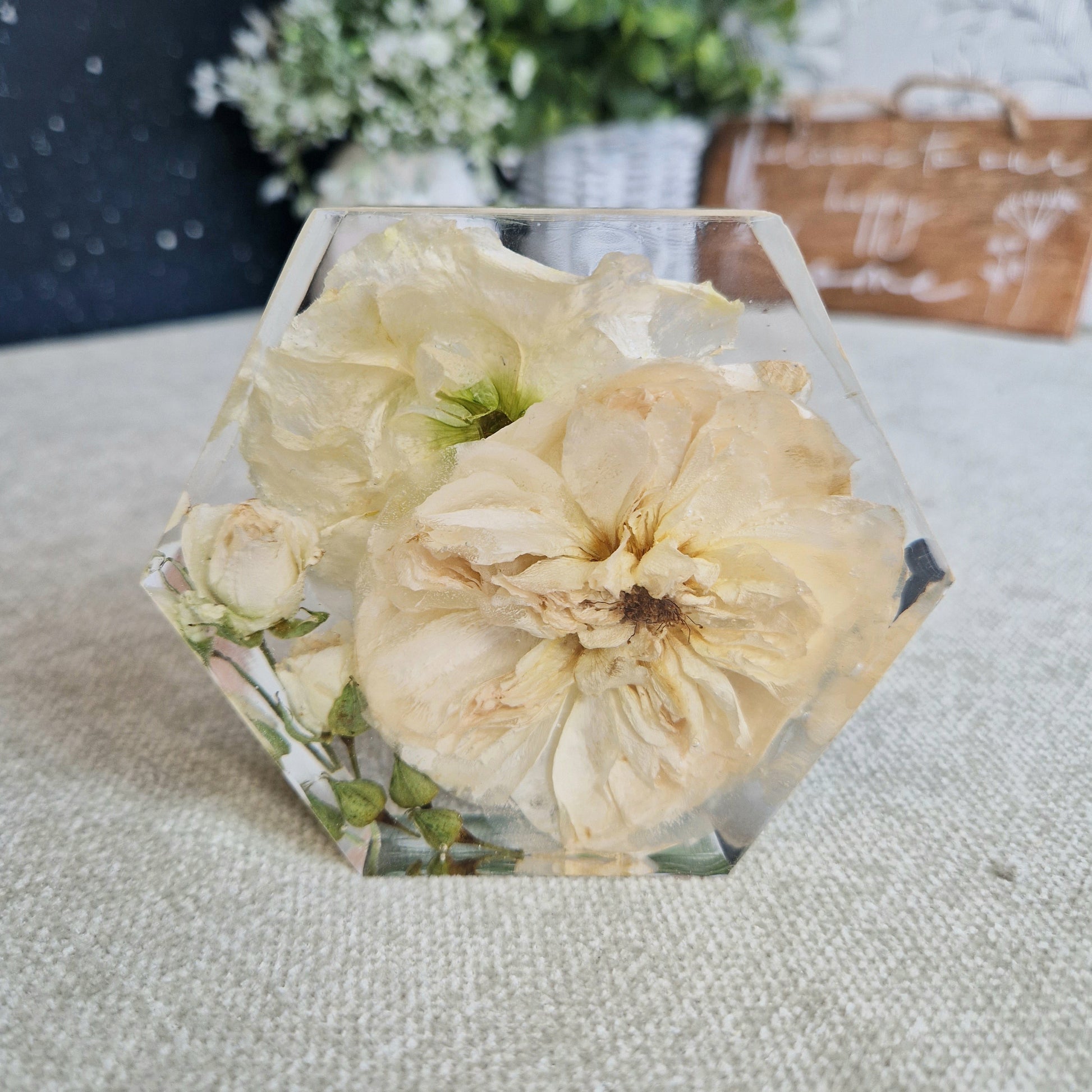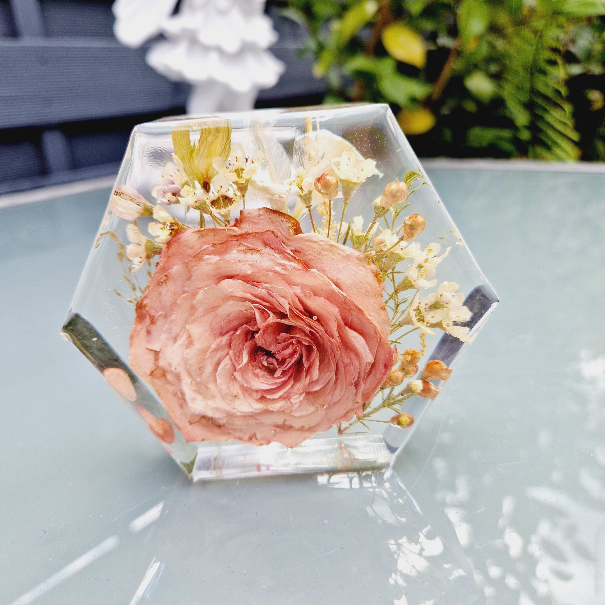 Introducing our 10cm x 3cm hexagon, perfect for displaying your cherished mementos from special occasions. Its freestanding design is suitable for collections of small flowers, making it a beautiful addition to any room. Celebrate life's moments with elegance and style.