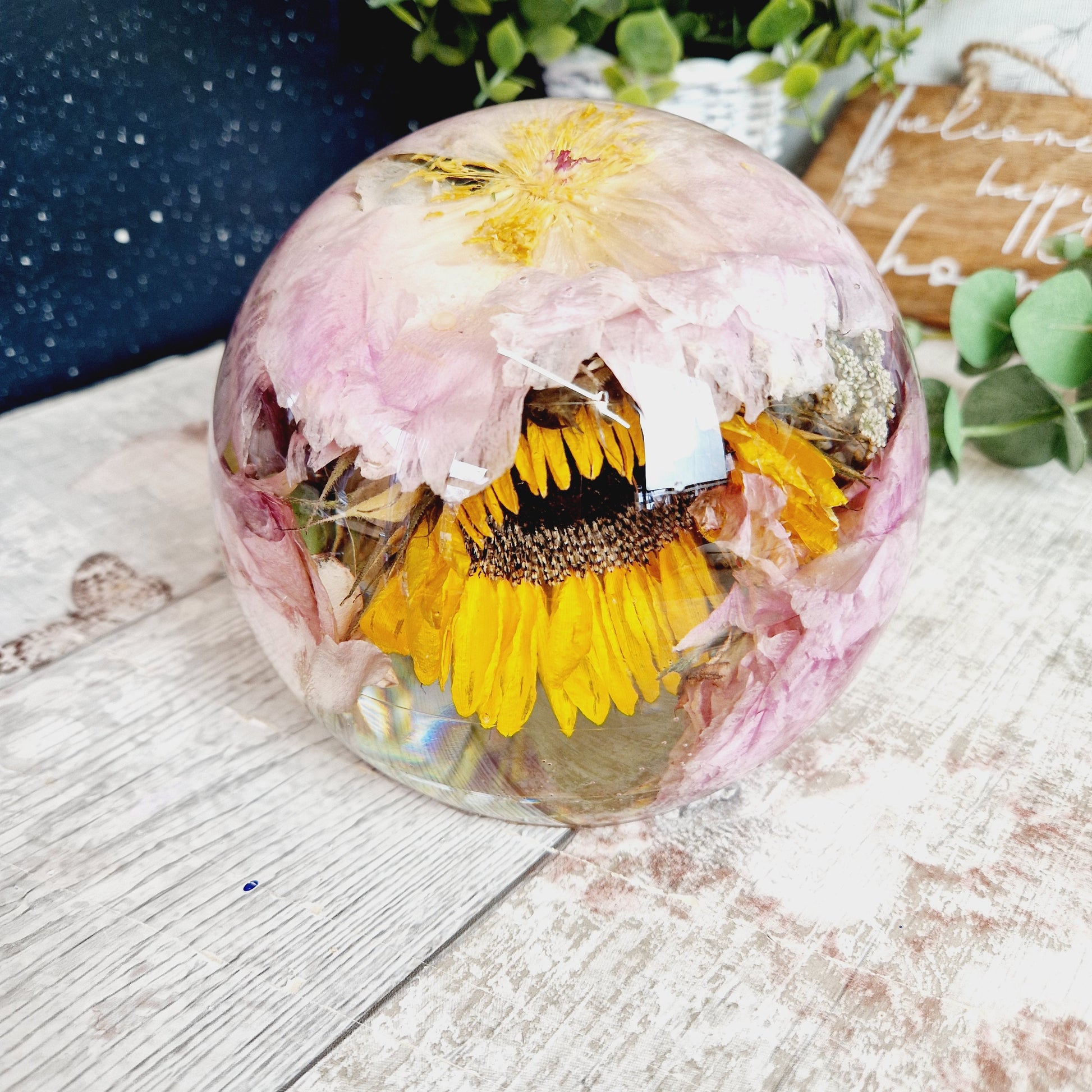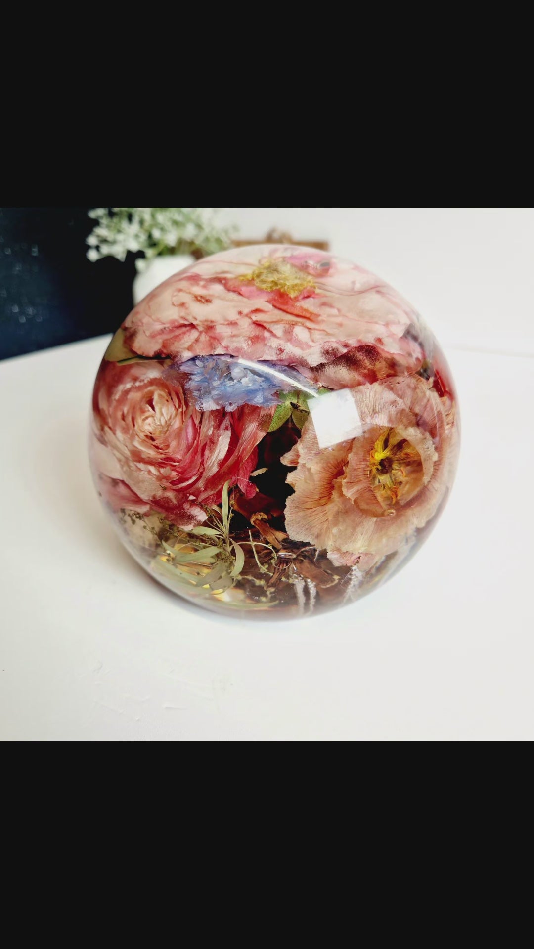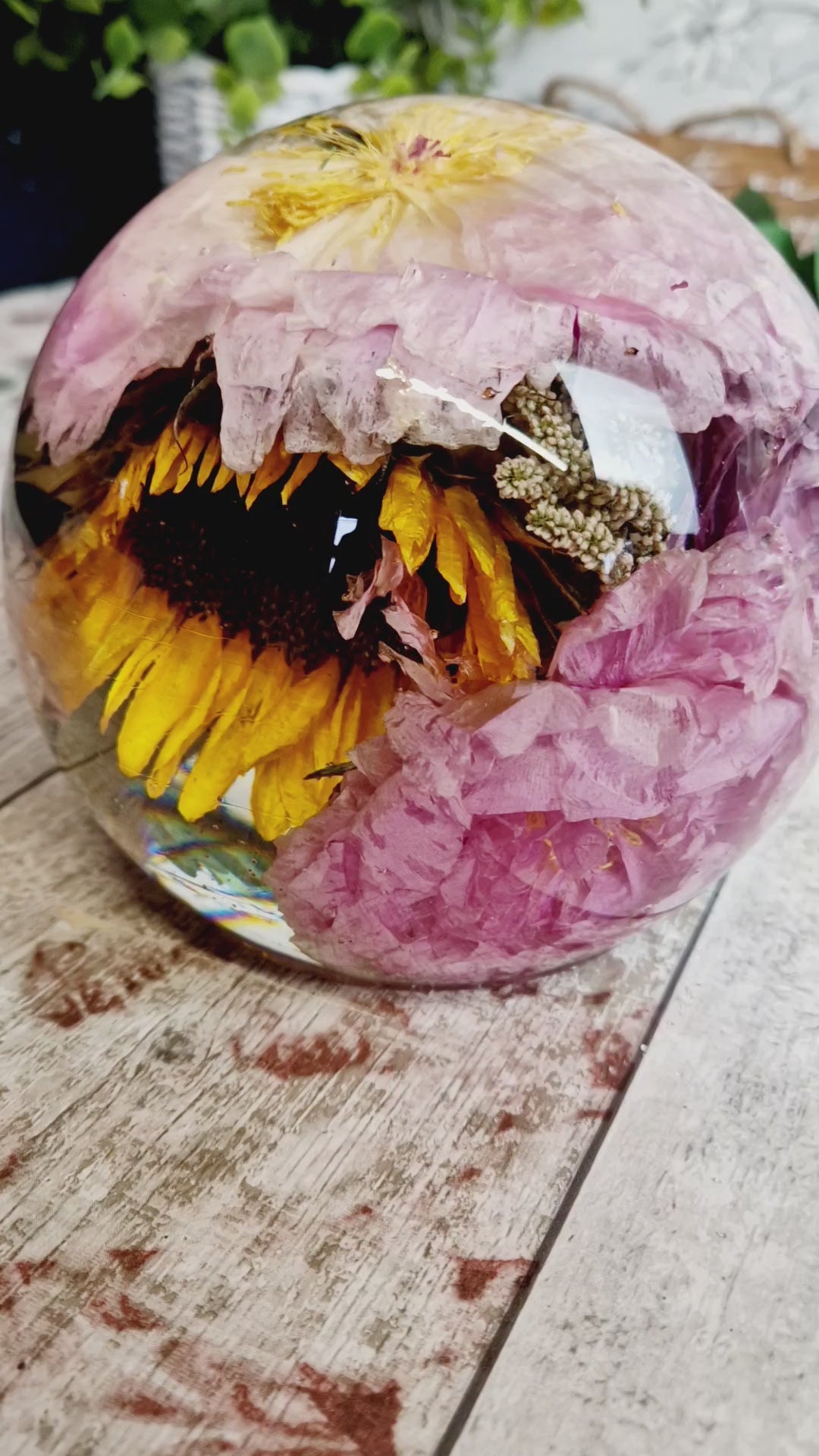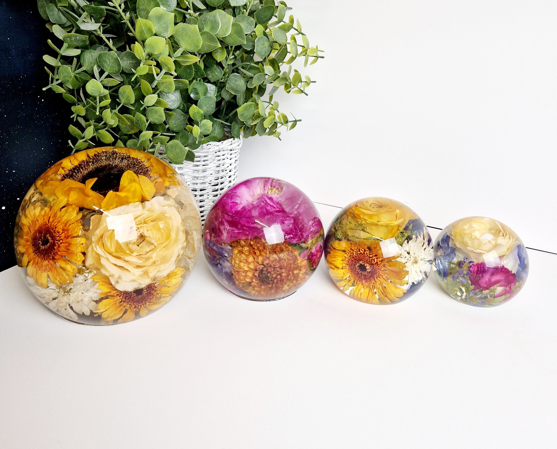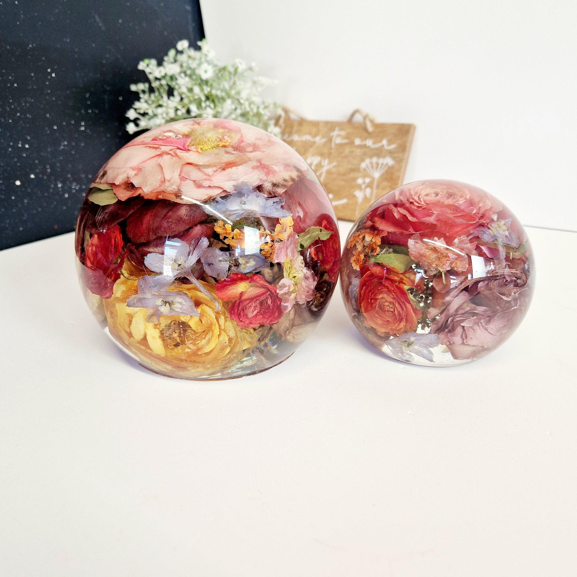 This includes the drying of your flowers so that they can be encapsulated inside the resin sphere. I am also able to use your own dried flowers.