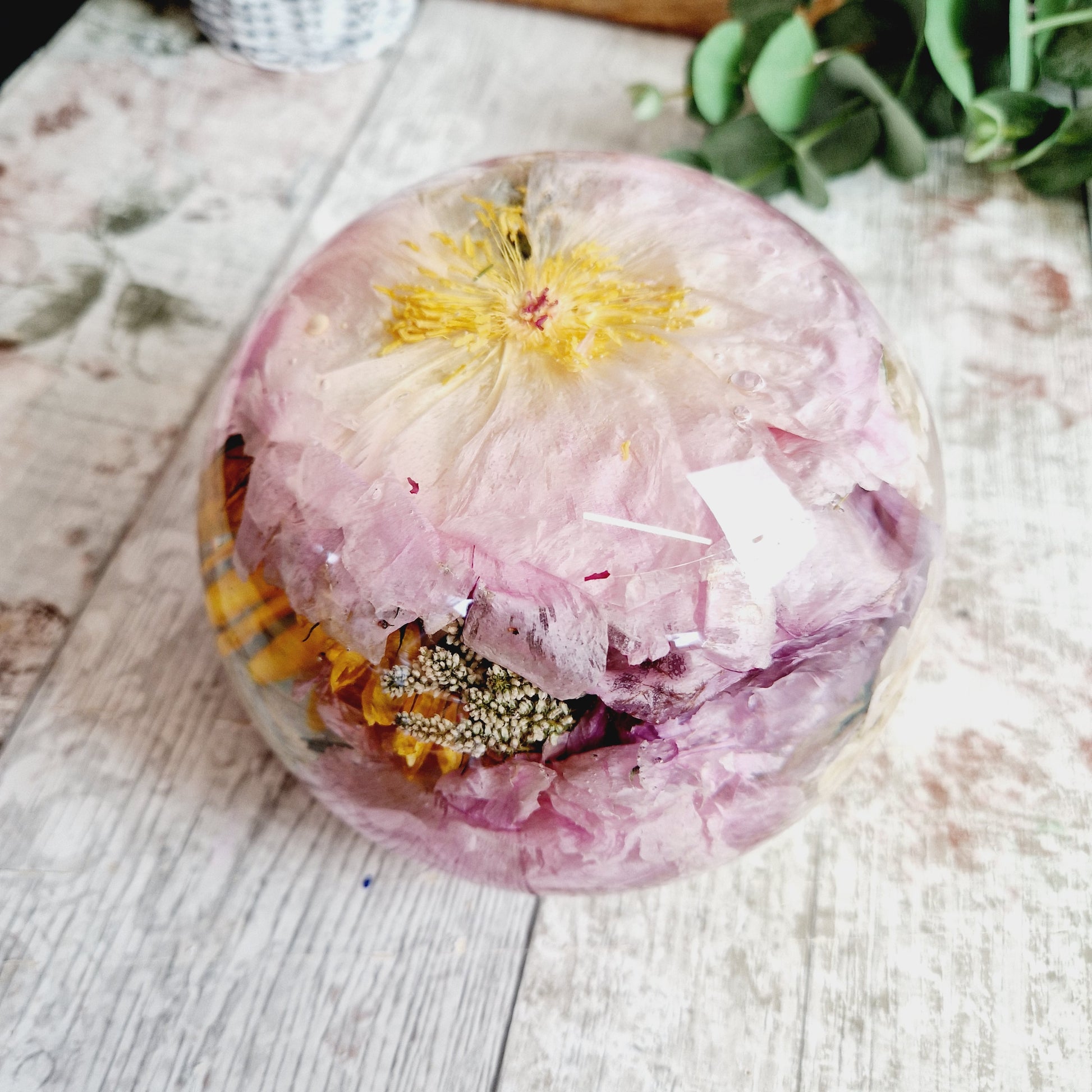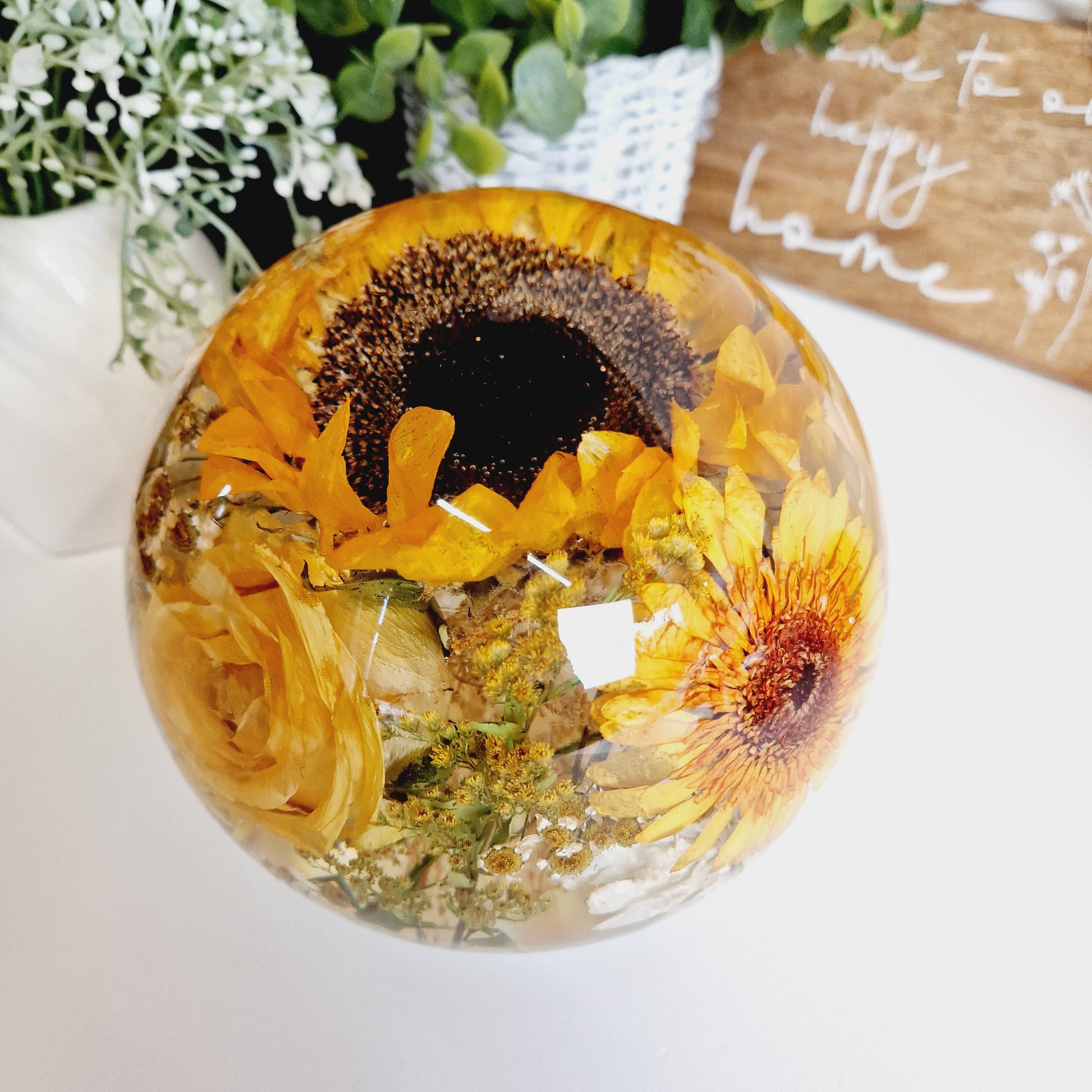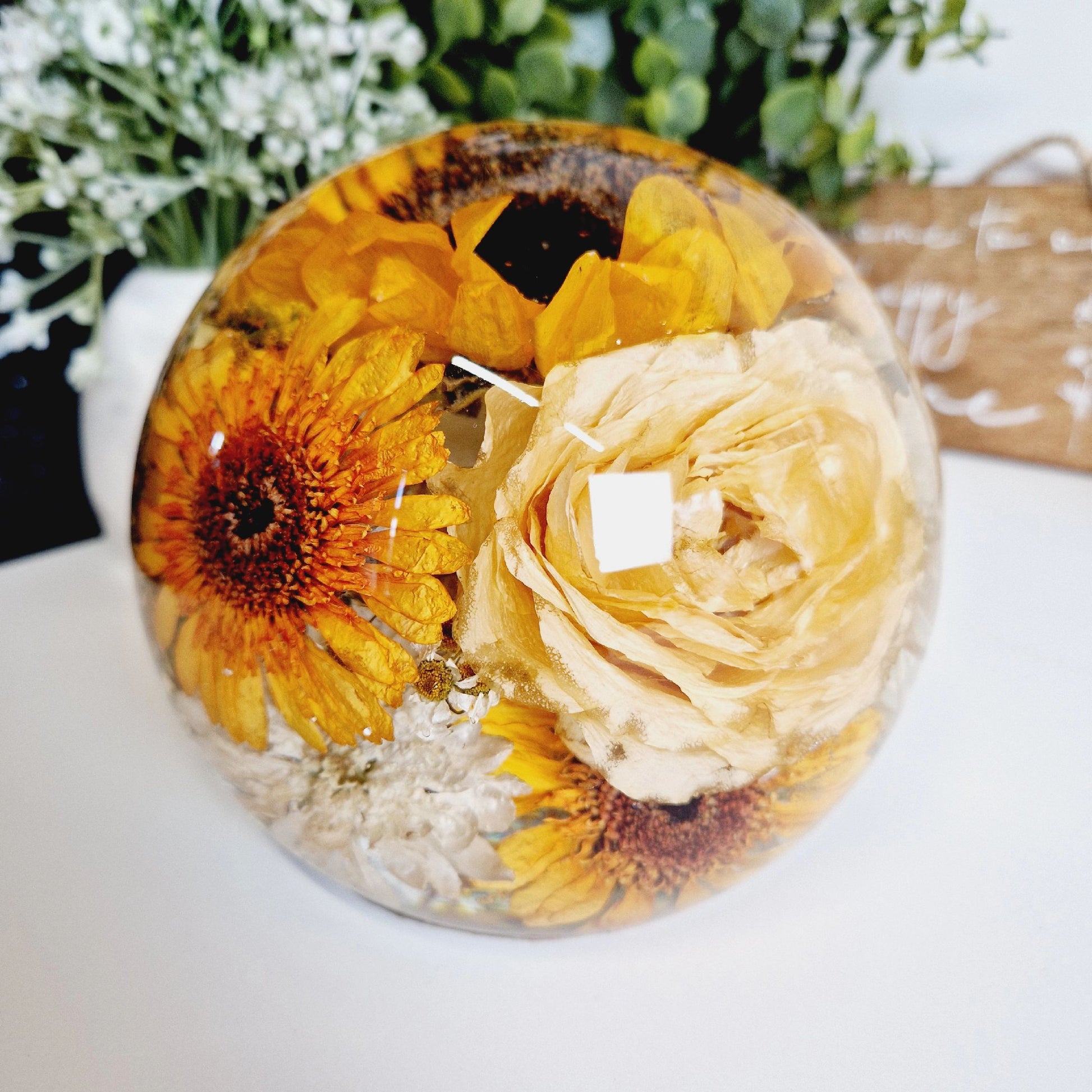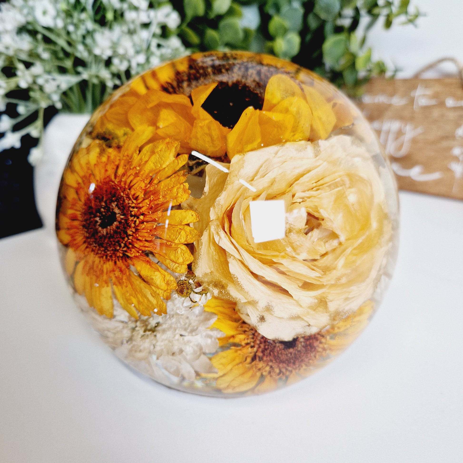 This includes the drying of your flowers so that they can be encapsulated inside the resin sphere. I am also able to use your own dried flowers.