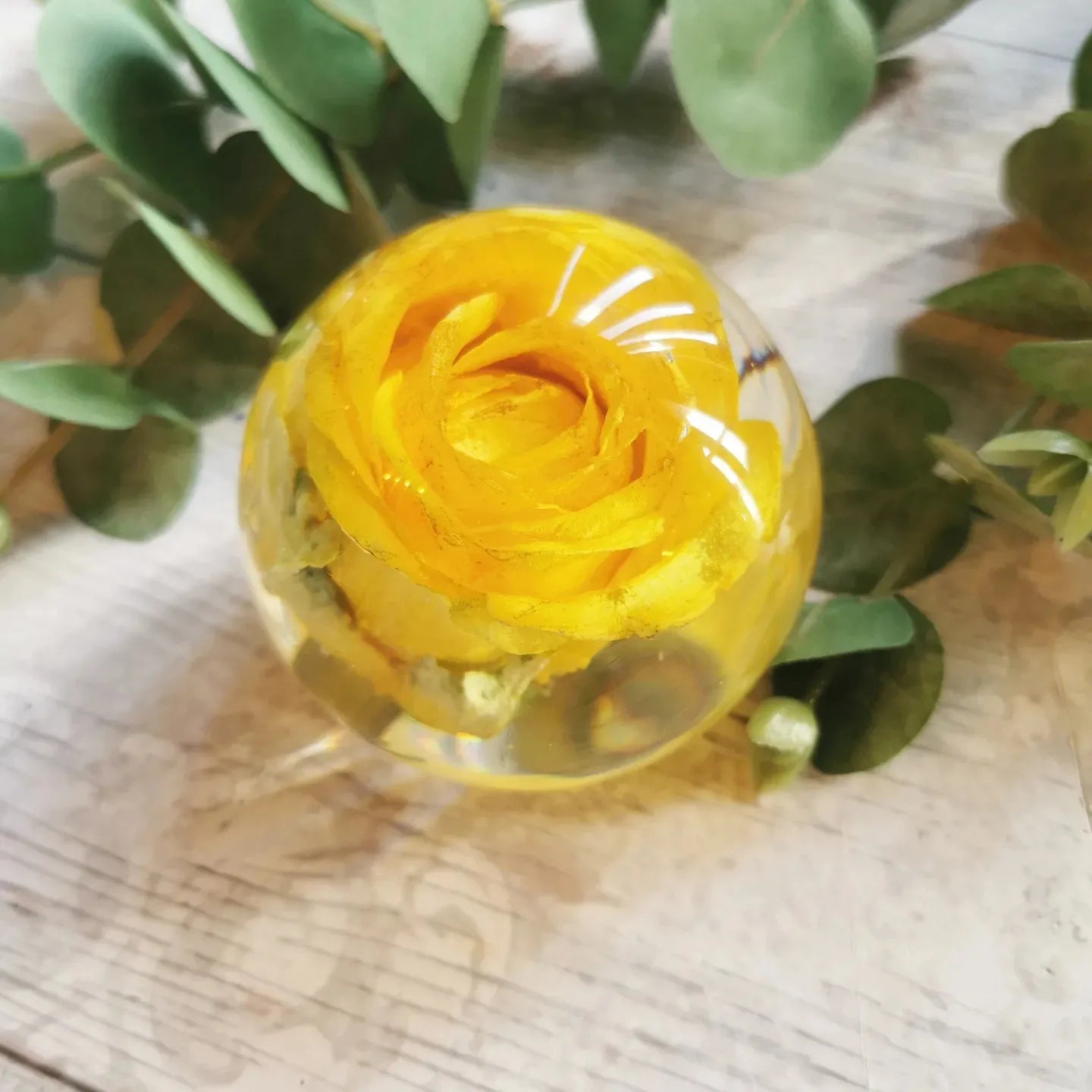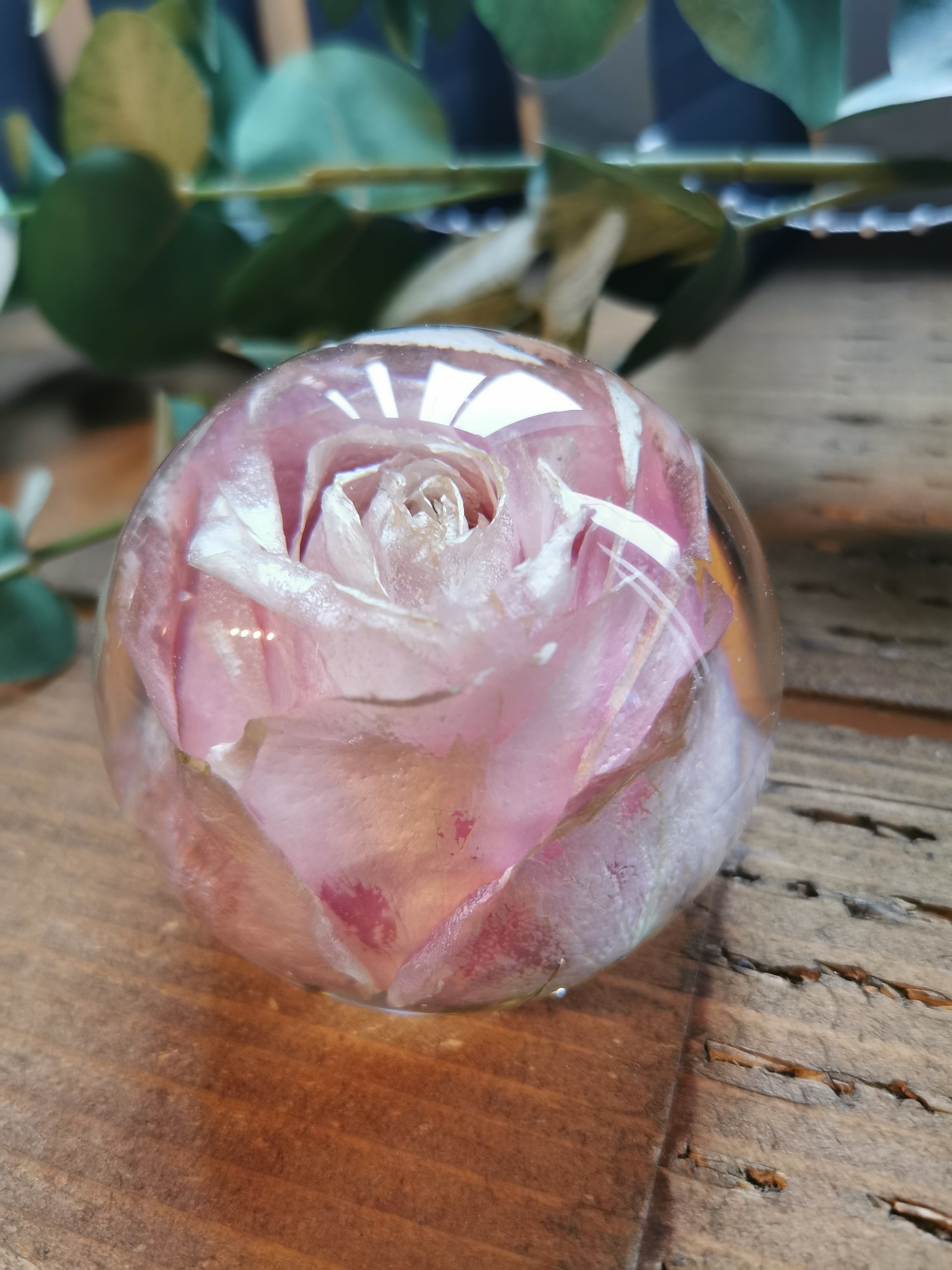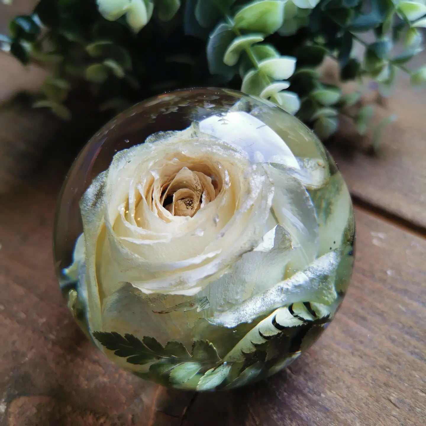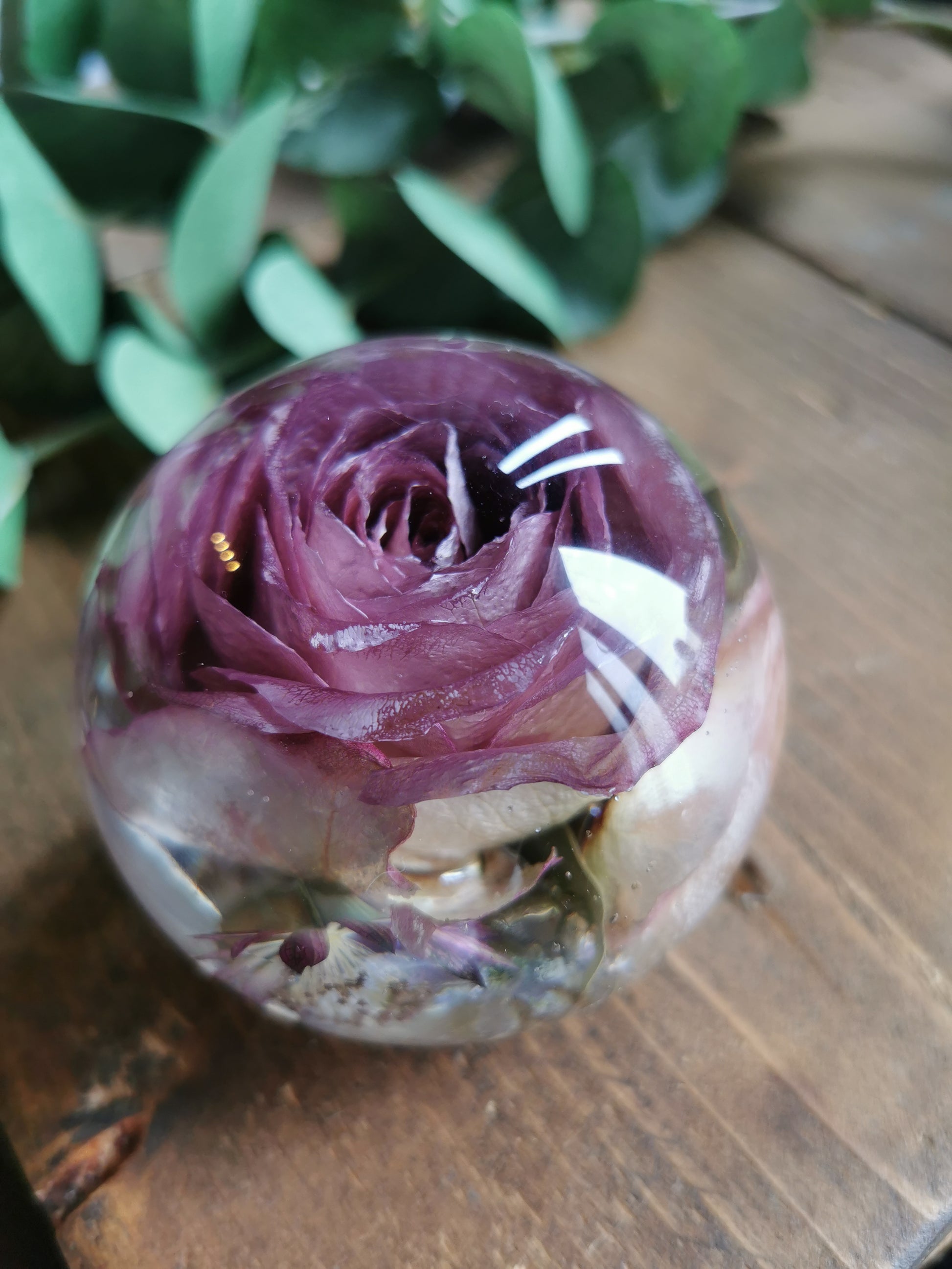 This listing is for a 8cm Sphere flower preservation made from epoxy resin.