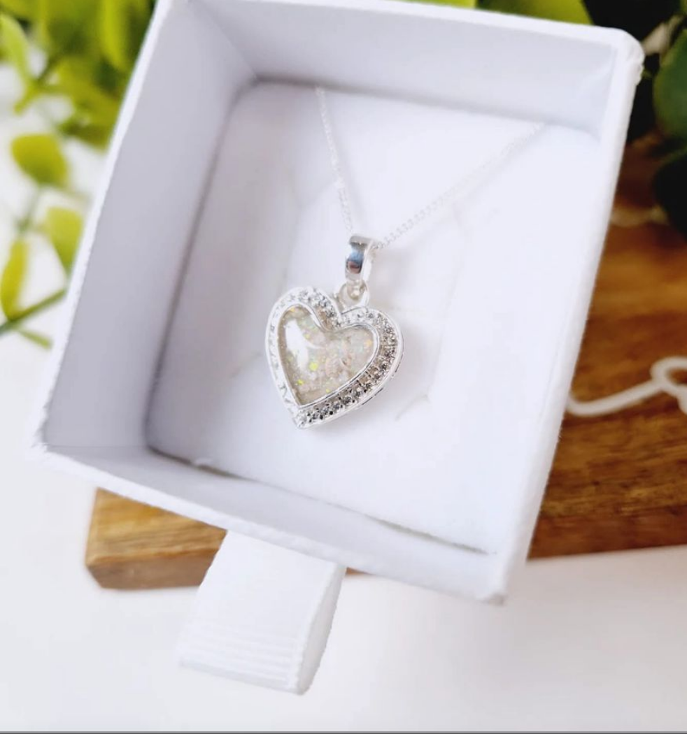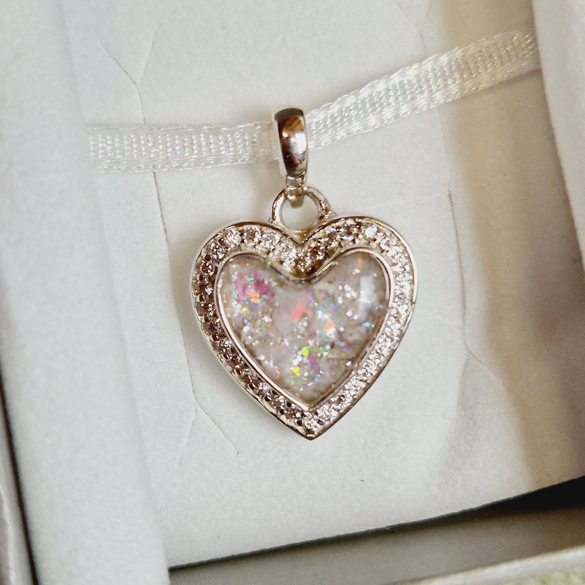 An eye-catching symbol of love and affection, this heart crystal pendant makes an exquisite statement. Crafted from the finest 925 sterling silver, the 11 x 15mm size piece is adorned with an ash inclusion or precious petals in a choice of array of colors to represent your unique style. A truly luxurious piece, it's sure to be treasured for years to come.