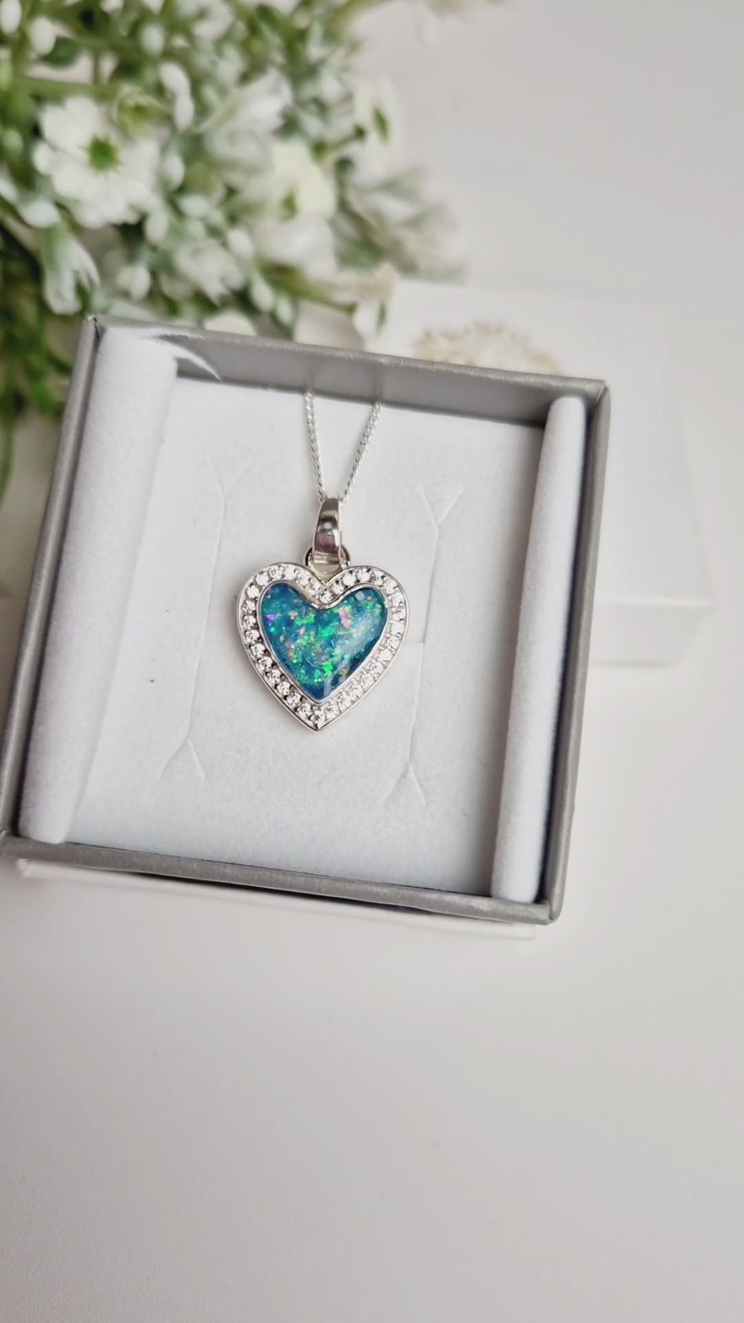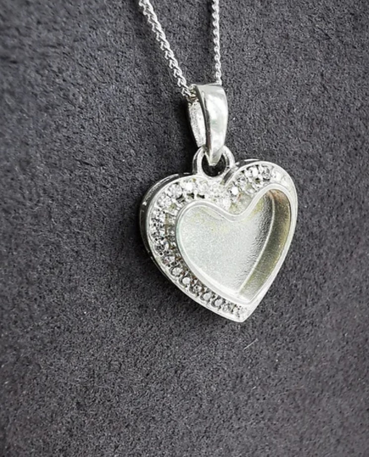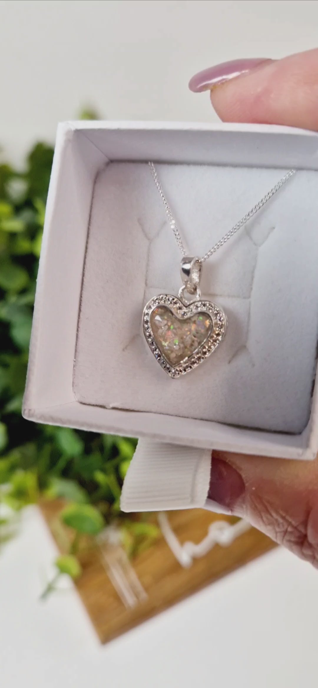 Heart crystal pendant 925 sterling silver 11 x15mm size ash inclusion or precious petals in a array of colours