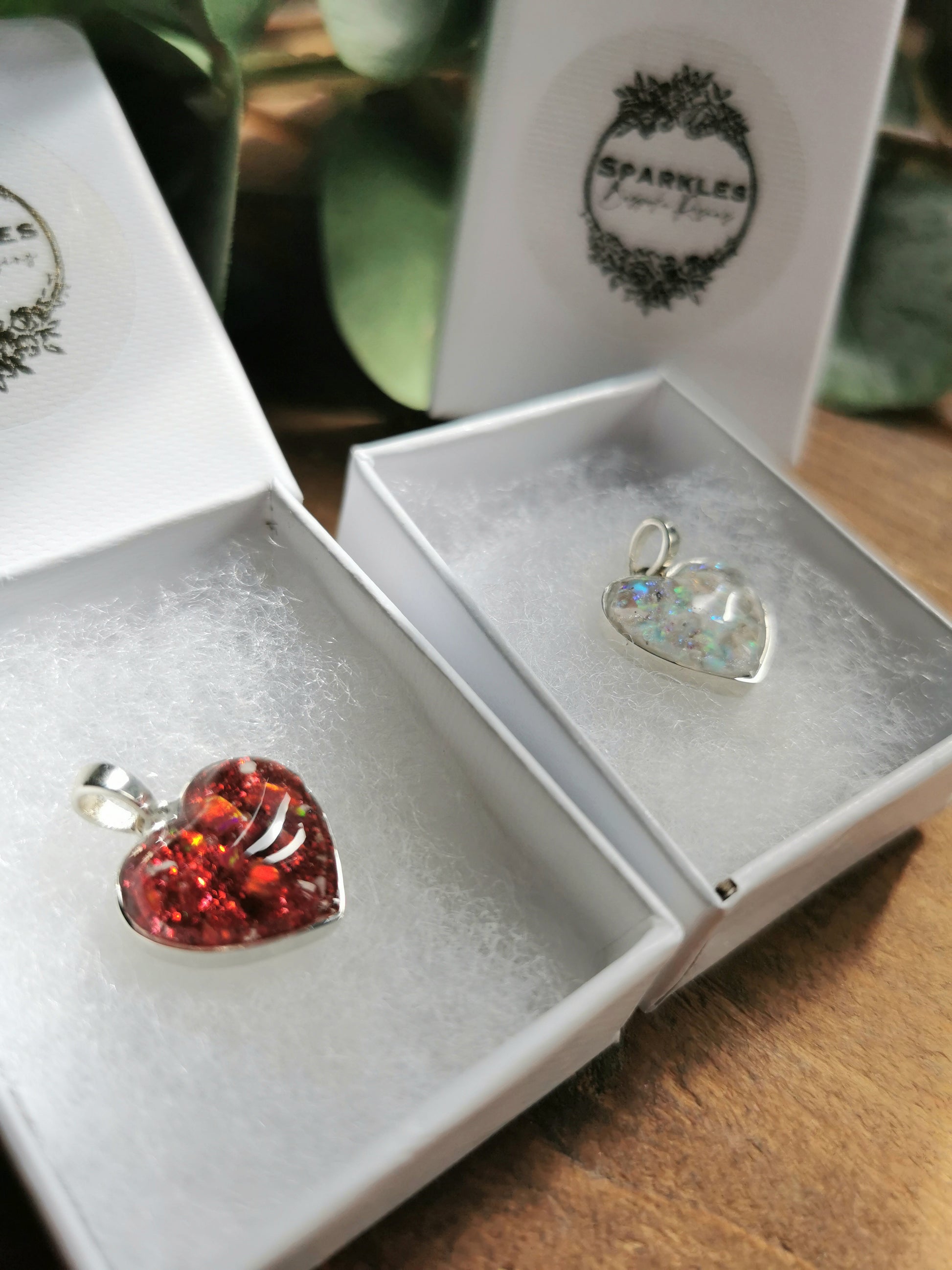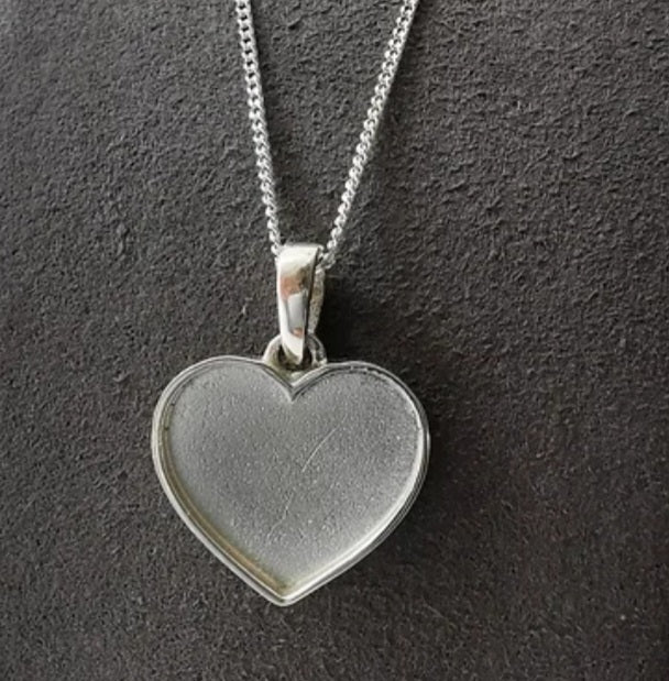 Heart pendant 925 sterling silver suitable for ash inclusion or precious petals 11 x 15mm size bespoke made in a range of colours.