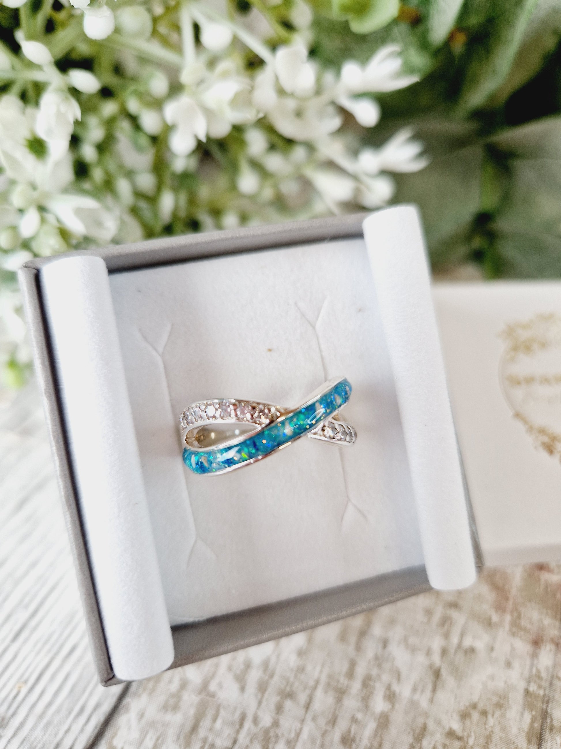 The Infinity of Love ring in sterling silver is a beautifully crafted memorial piece, featuring a flowing wave design that symbolizes timeless remembrance and lasting connection. Its elegant form offers a dignified way to honor cherished memories with subtle sophistication, making it a meaningful keepsake to wear close to the heart.