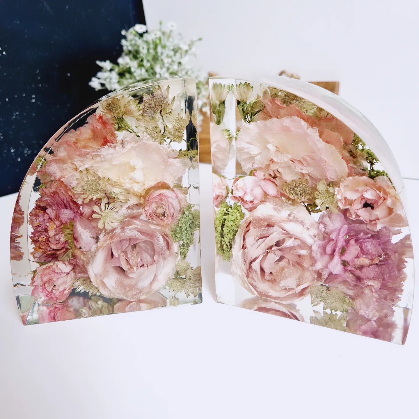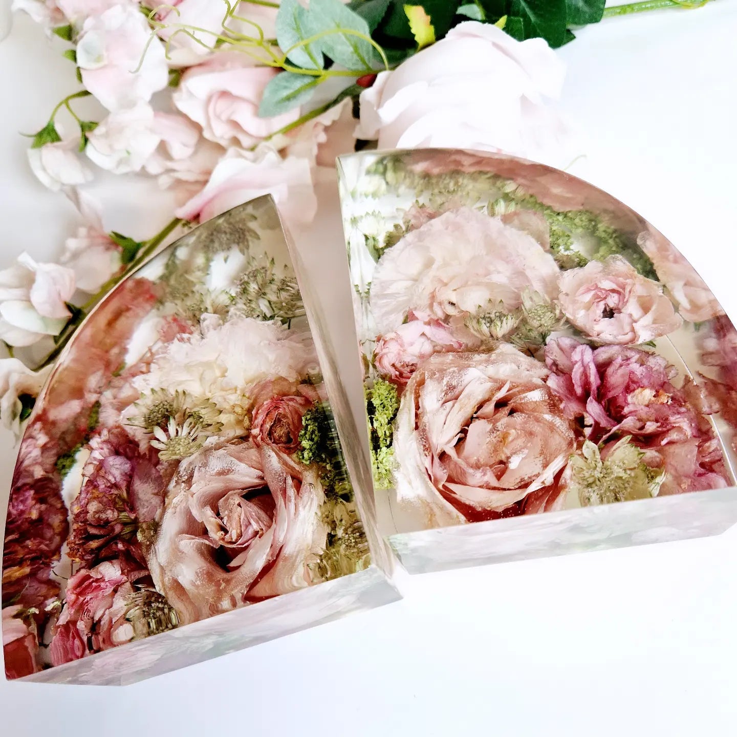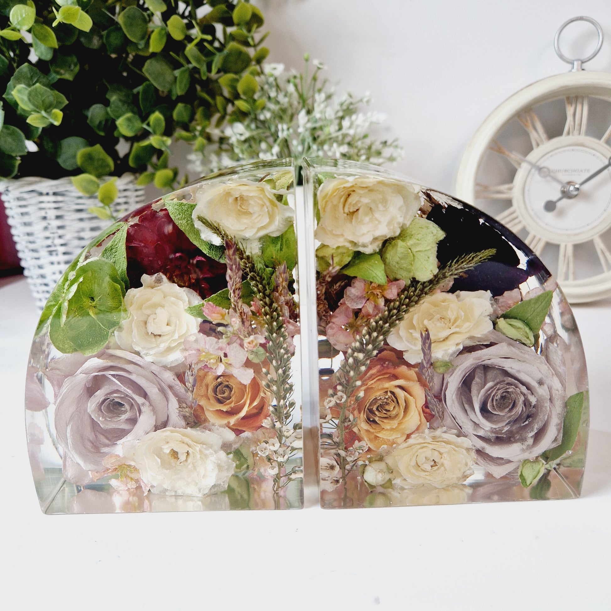 Capture memories of special moments in your life with these large arch bookends. These sophisticated yet exclusive bookends will display your wedding or funeral flowers in an elegant and tasteful way, preserving them as a keepsake for years to come. The arch shape adds an understated, artistic look to your memories.