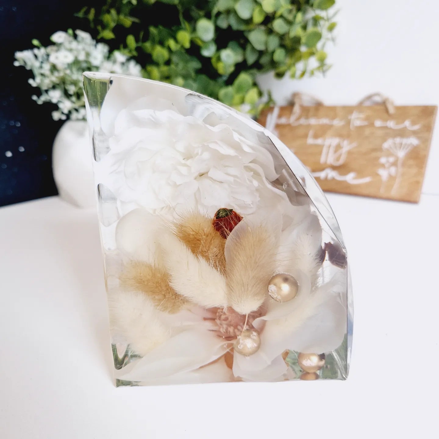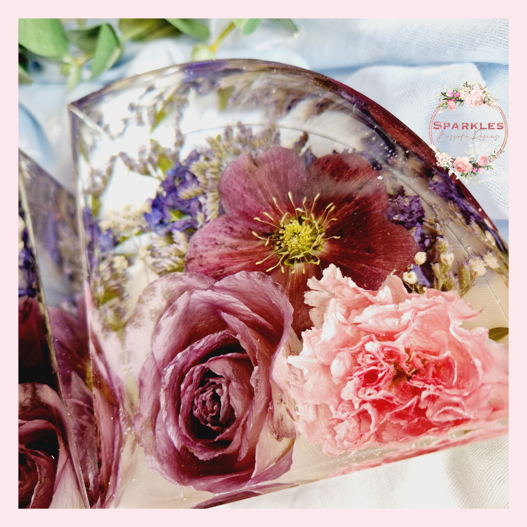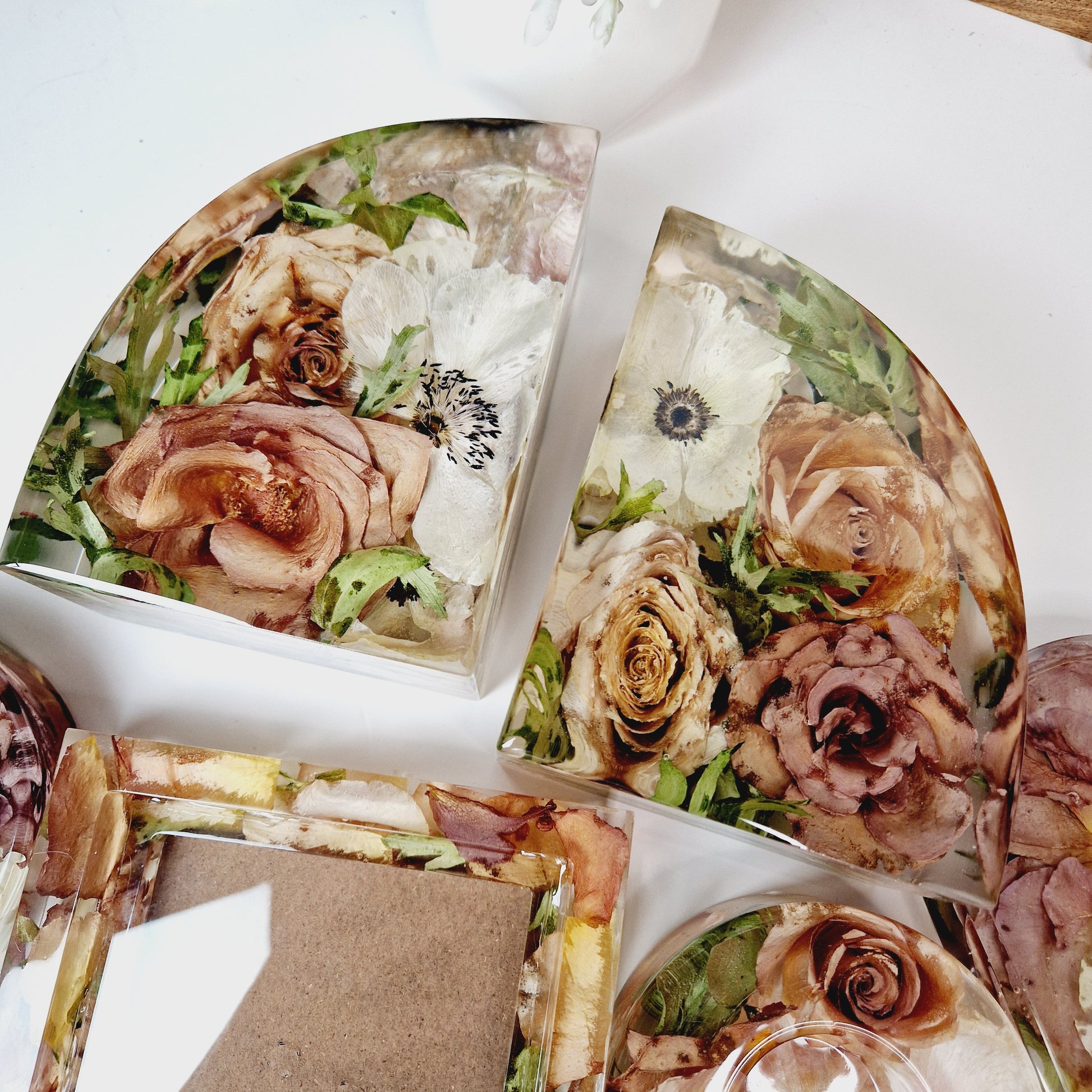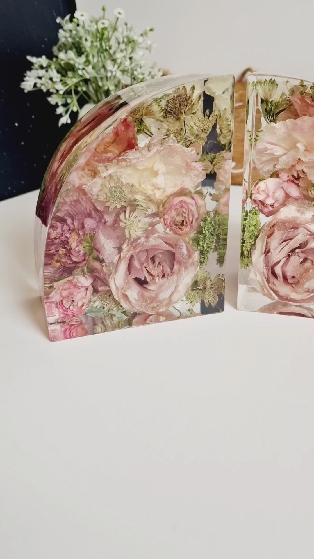 Capture memories of special moments in your life with these large arch bookends. These sophisticated yet exclusive bookends will display your wedding or funeral flowers in an elegant and tasteful way, preserving them as a keepsake for years to come. The arch shape adds an understated, artistic look to your memories.