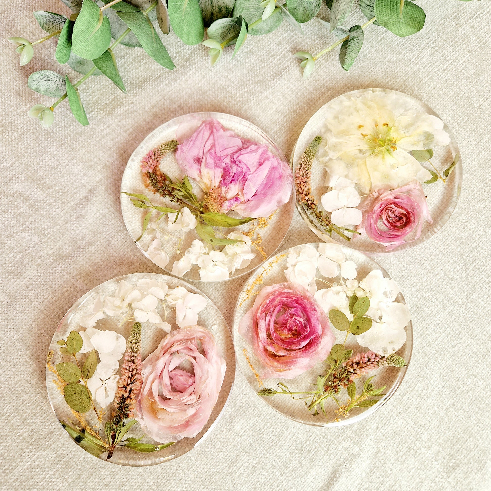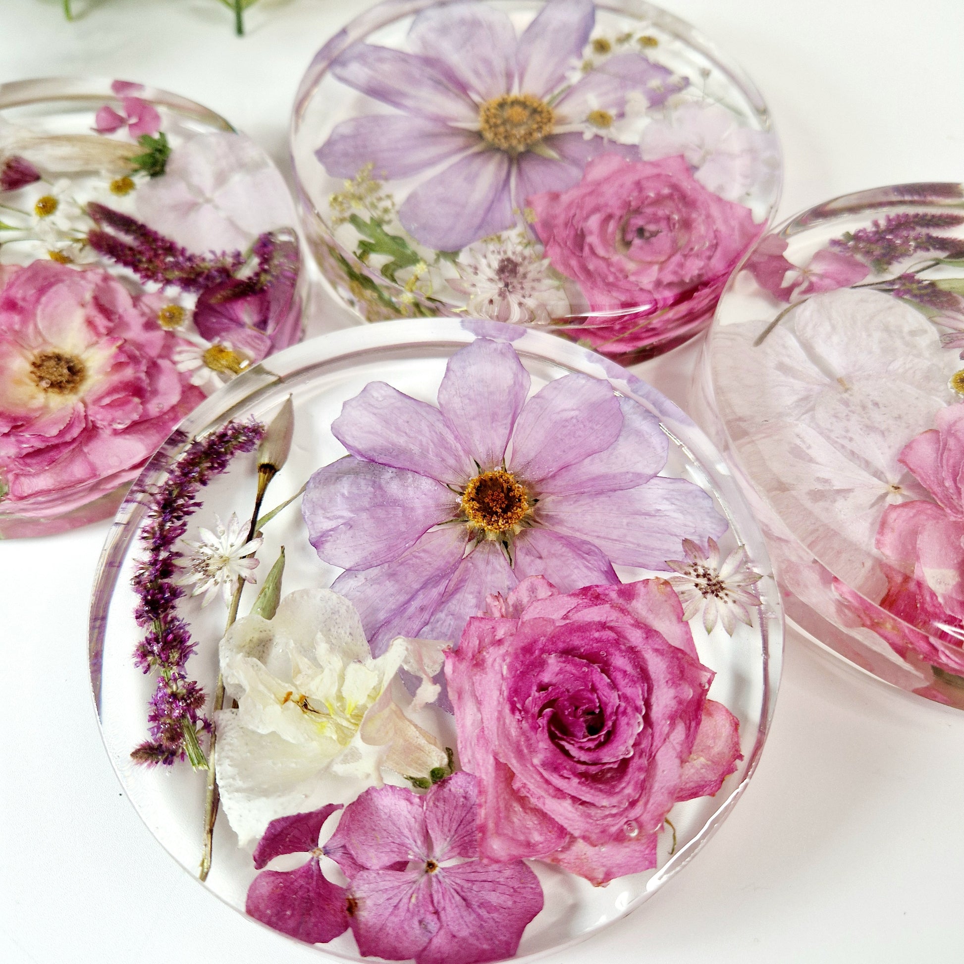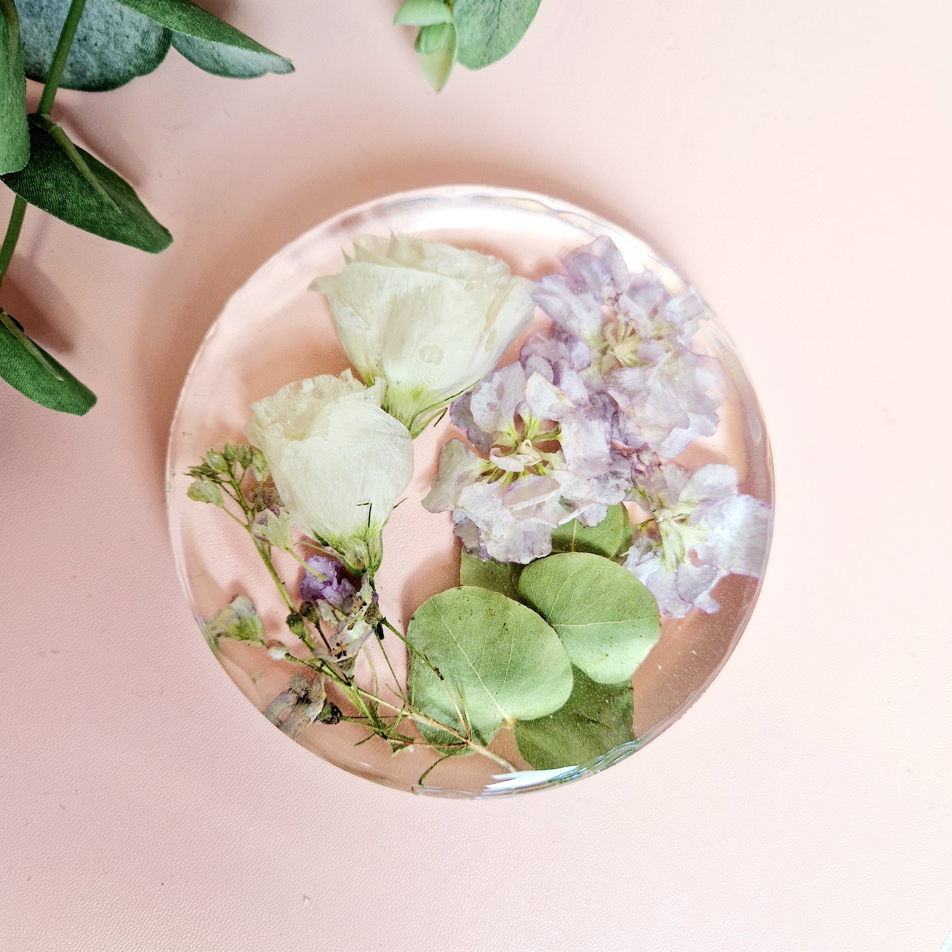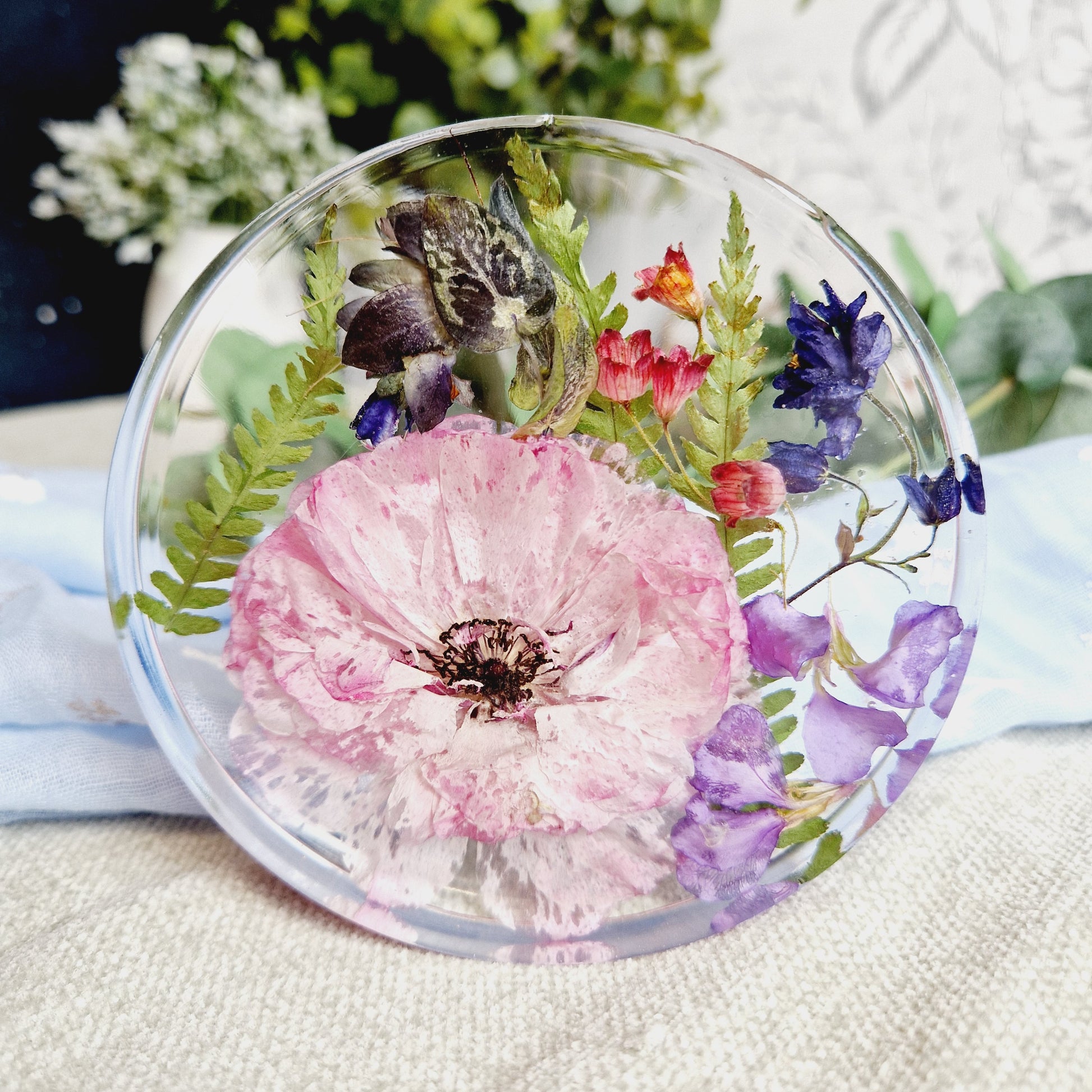 This listing is for a Coaster style flower preservation made from epoxy resin.