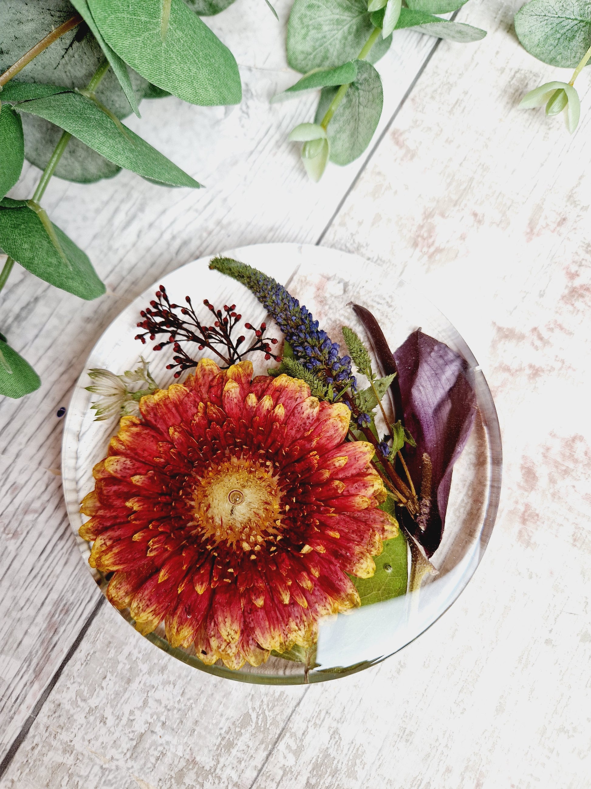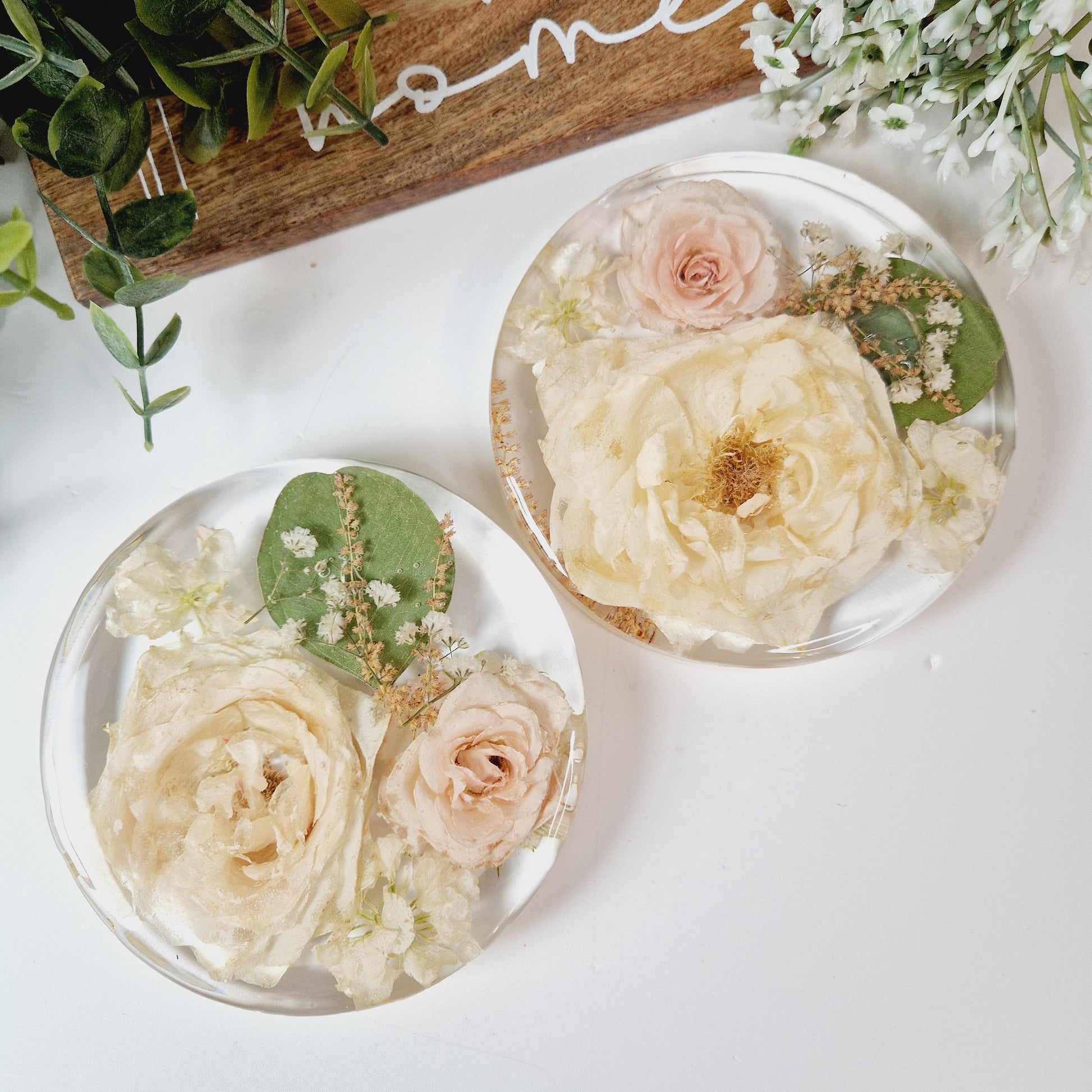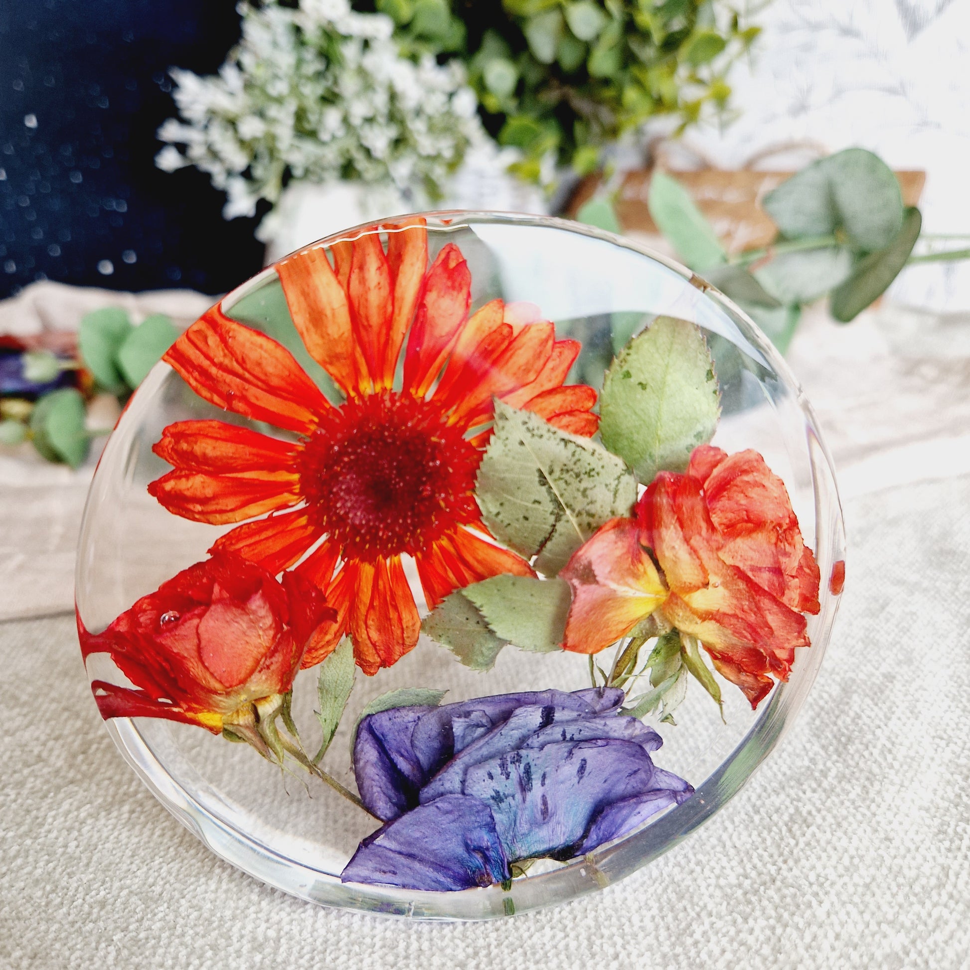 Treasure your precious flowers forever. your flowers will be professionally dried and encapsulated in resin to make you a beautiful keepsake.