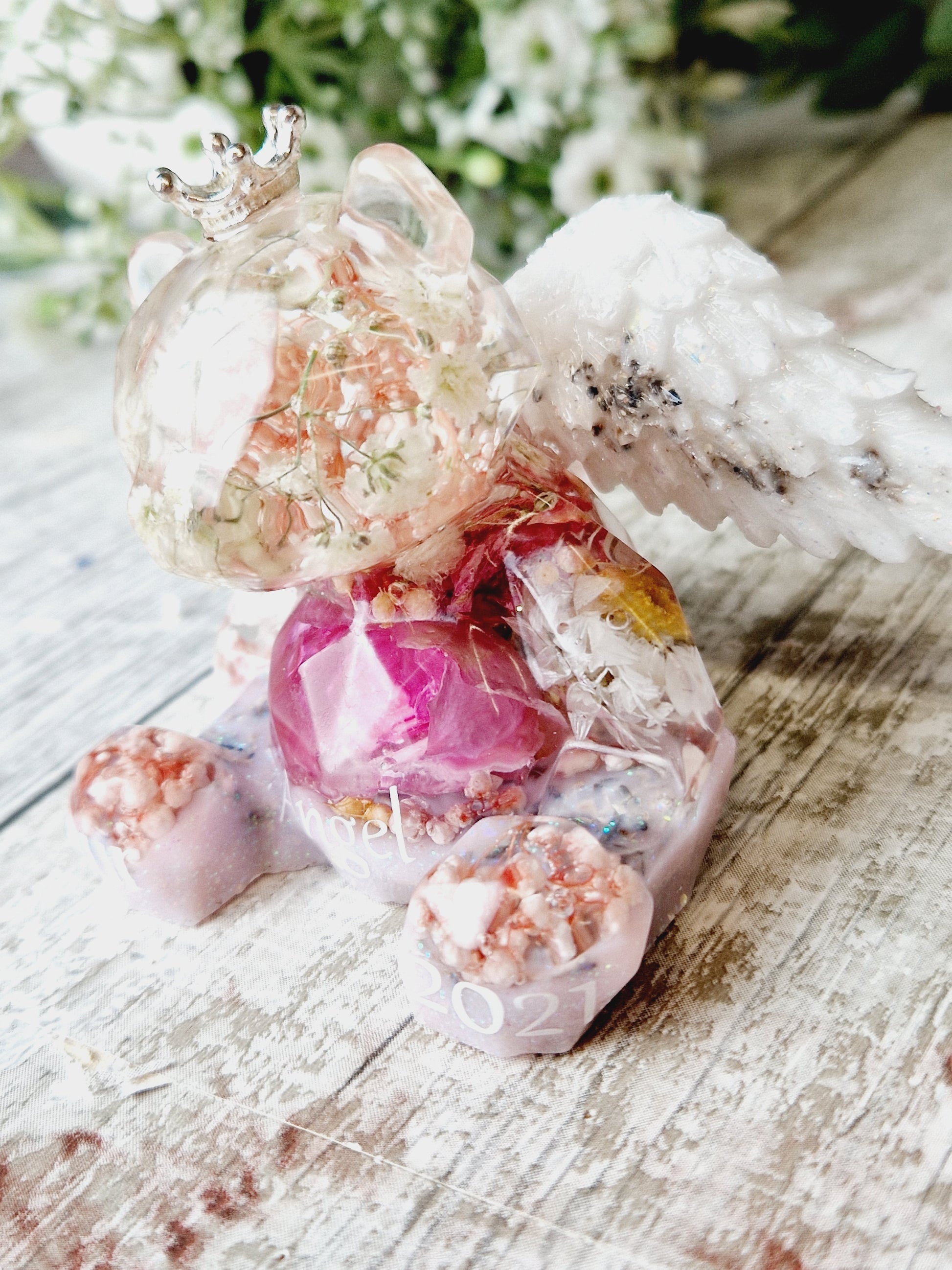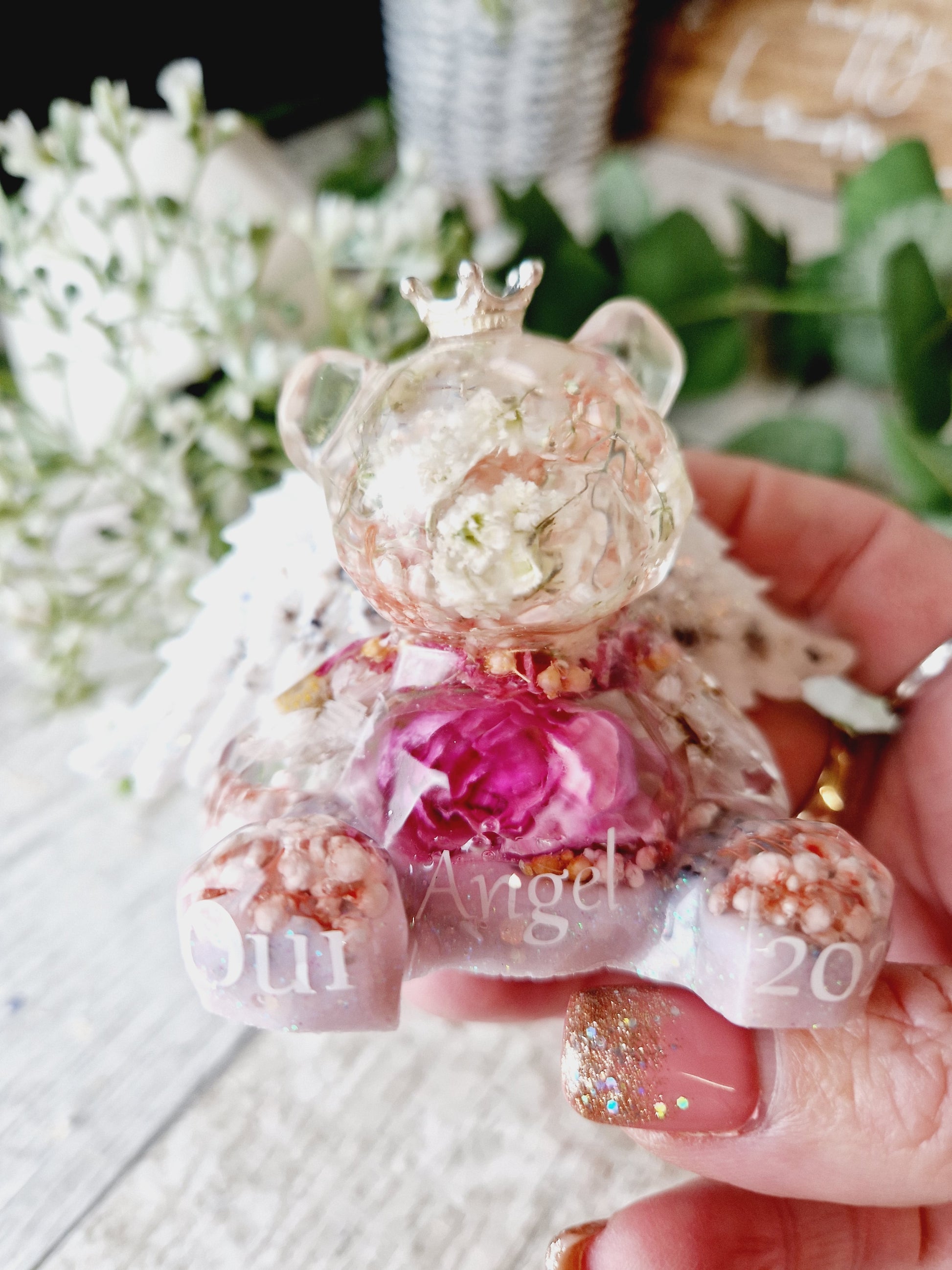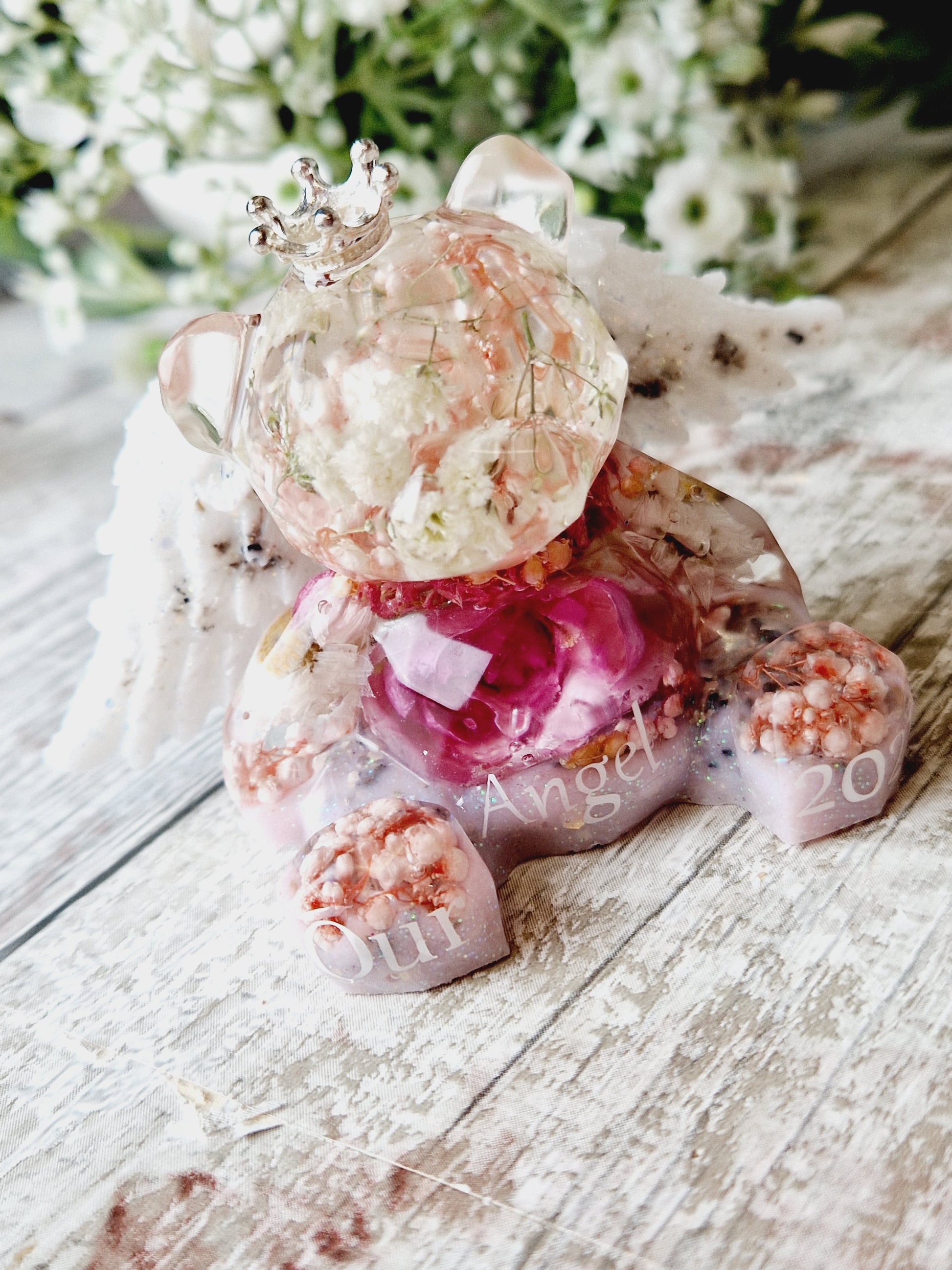 We can include funeral flowers or we can supply flowers for you. This bear is available to have inclusions added of ashes or hair.