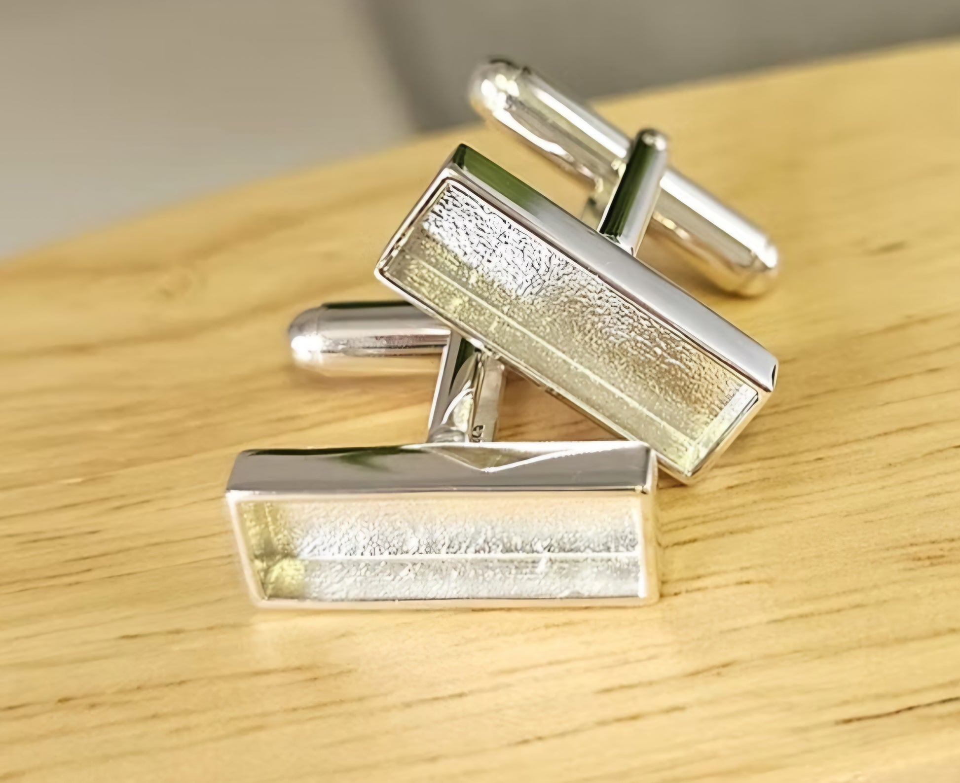 Crafted from solid sterling silver, these oblong cufflinks offer a refined way to preserve cherished memories. Designed to hold ashes, hair, or fur inclusions, each pair is meticulously custom-made to your specifications, including your choice of color. Perfect for adding a subtle, personal touch to formal attire with timeless elegance.