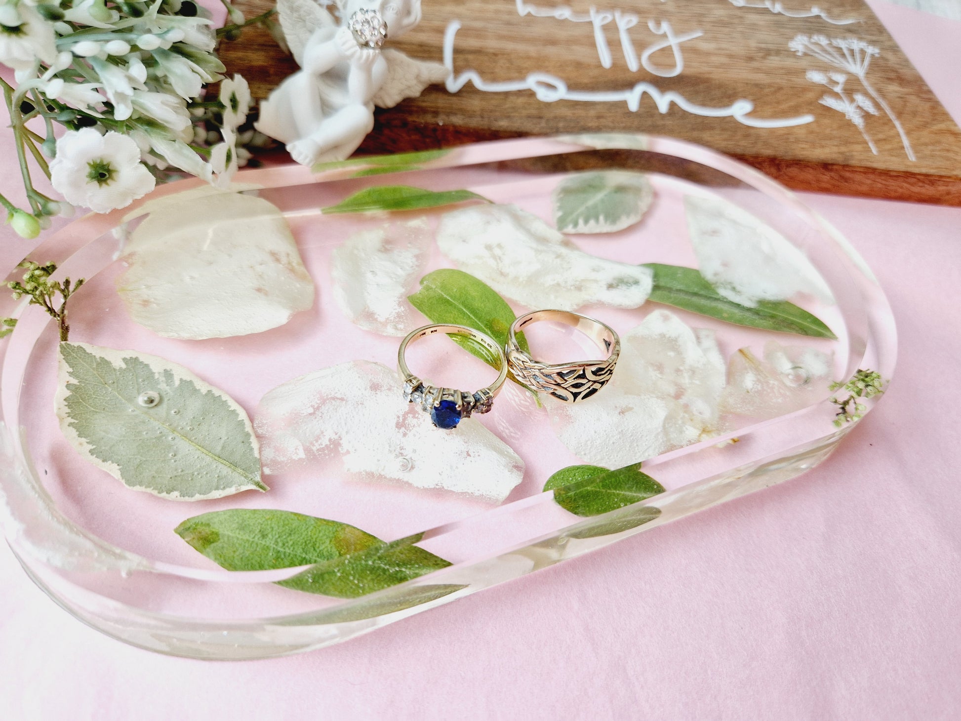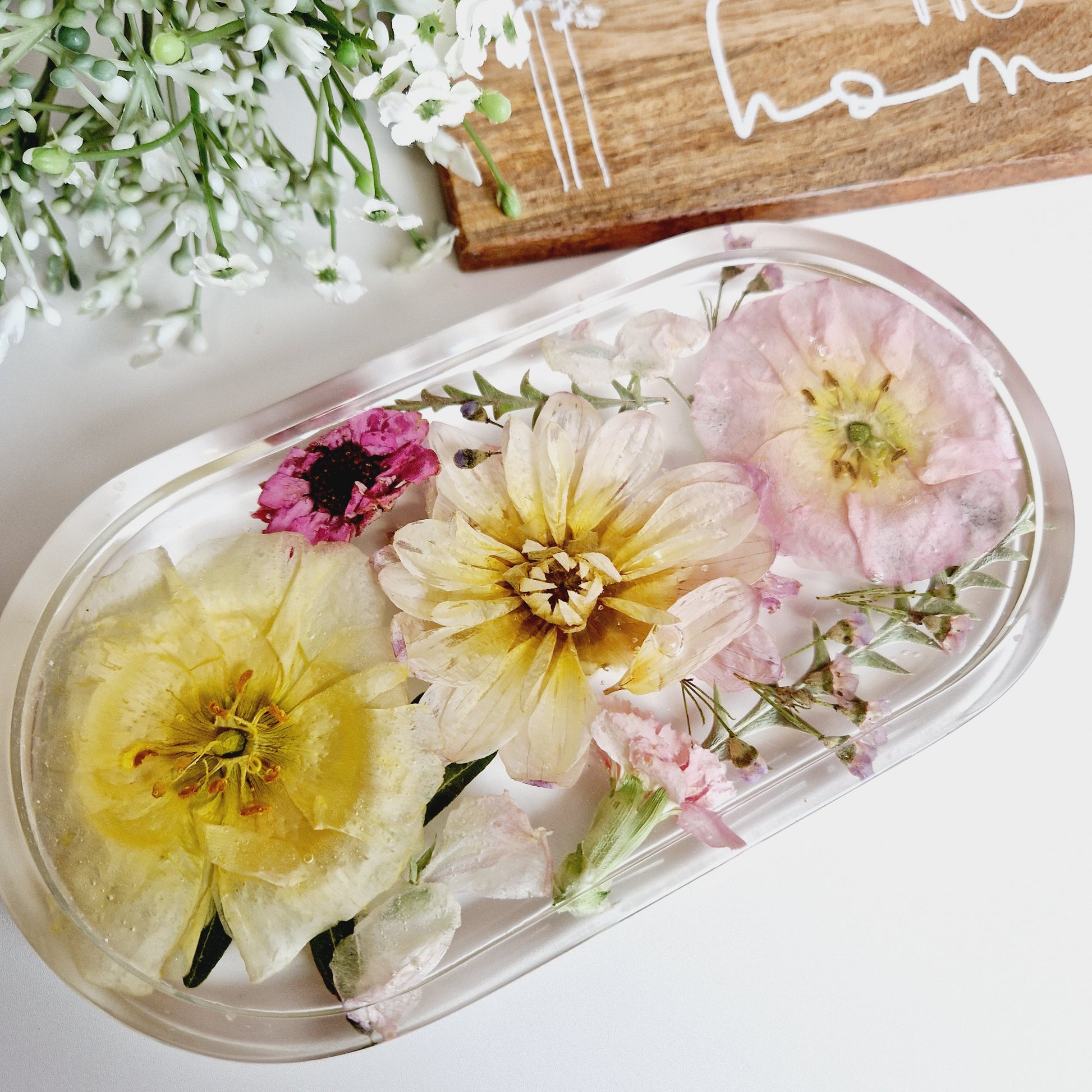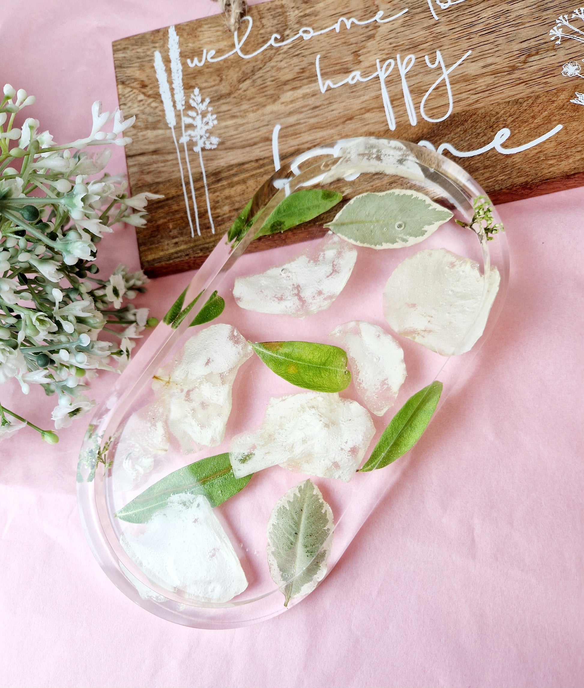 This stylish oval deep floral trinket dish is perfect for presenting flat flowers or petals in a sophisticated, tasteful way. Its elegant shape and subtle texture will help it to stand out in any setting, whether it is in your home or as an aesthetically pleasing center piece on your coffee table.