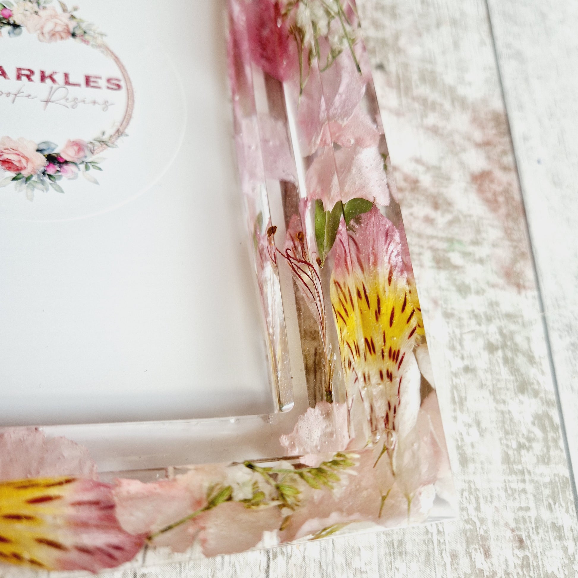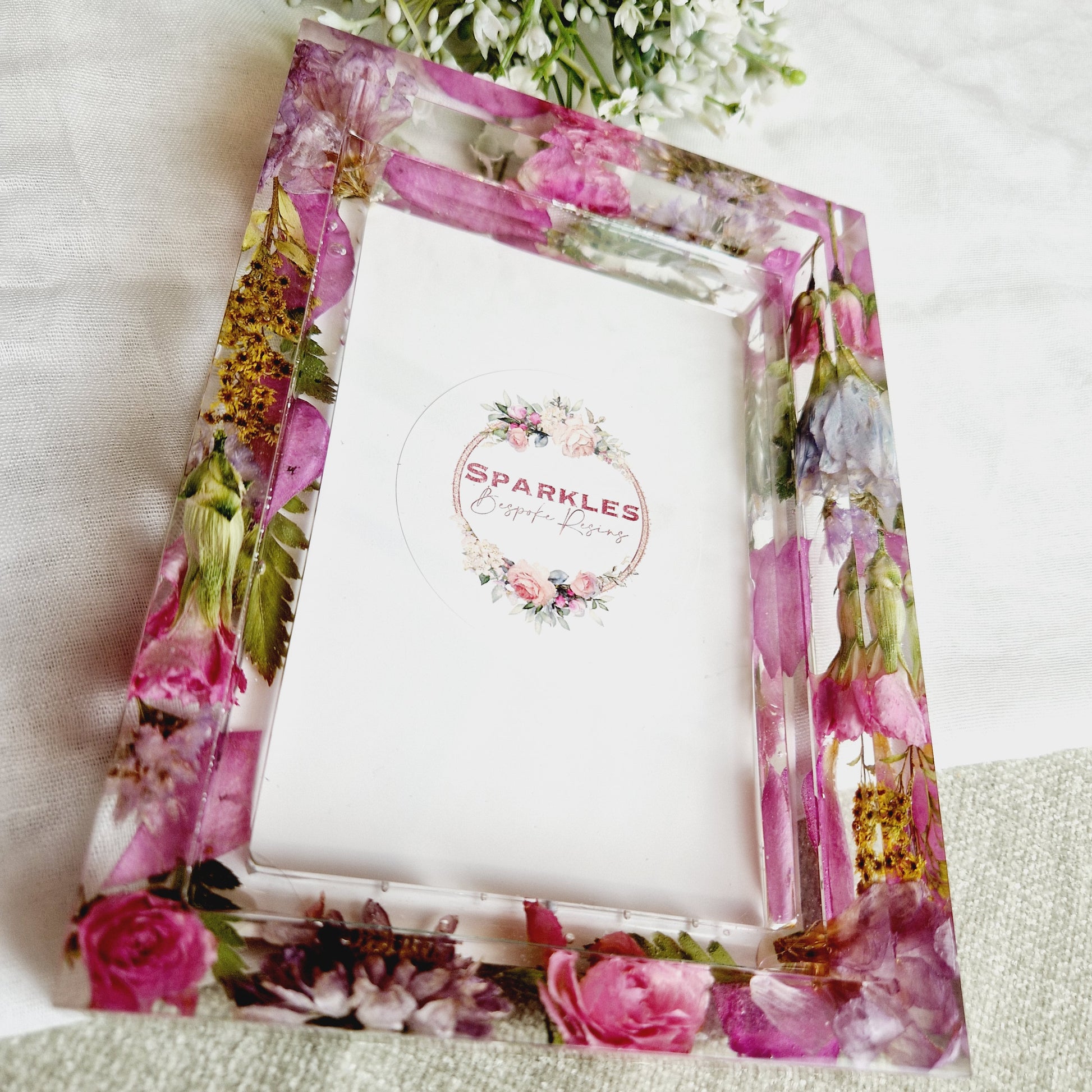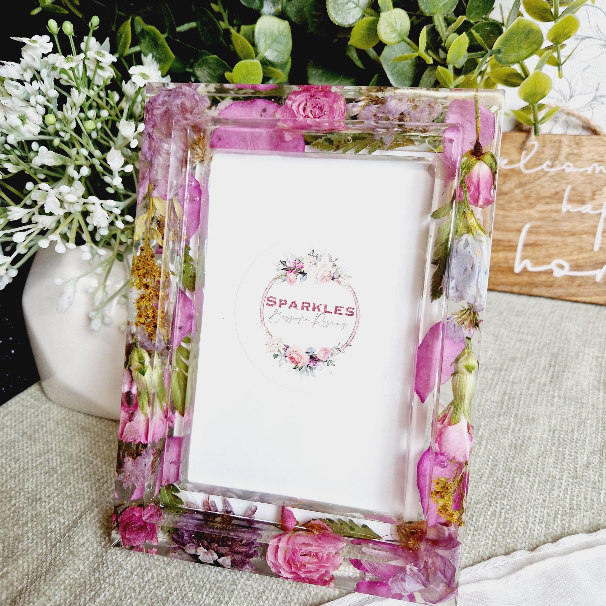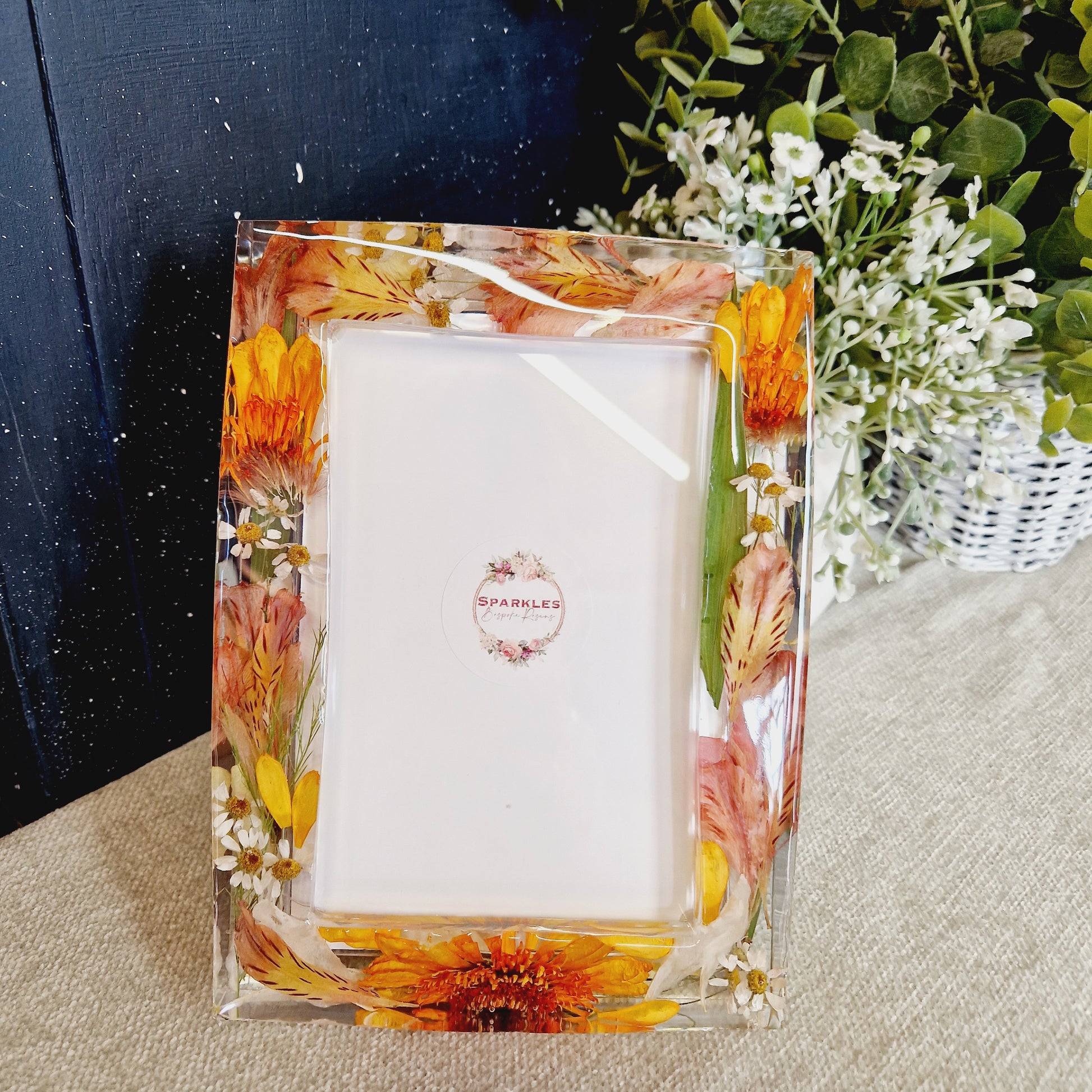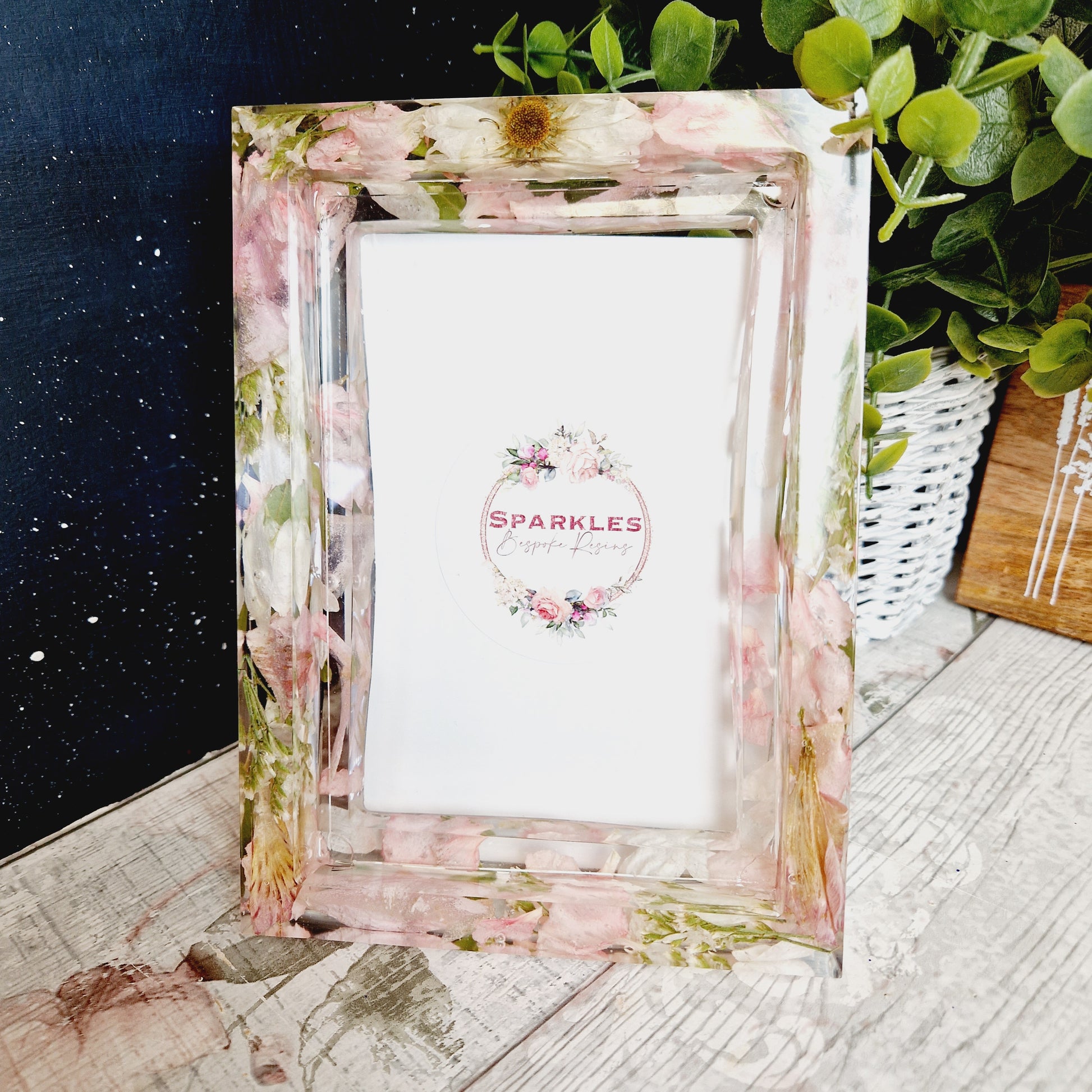 This includes the drying of your flowers so that they can be encapsulated inside the resin frame is 15cm by 10cm . I am also able to use your own dried flowers. This frame will come with glass front and backing board to display your favorite photo.