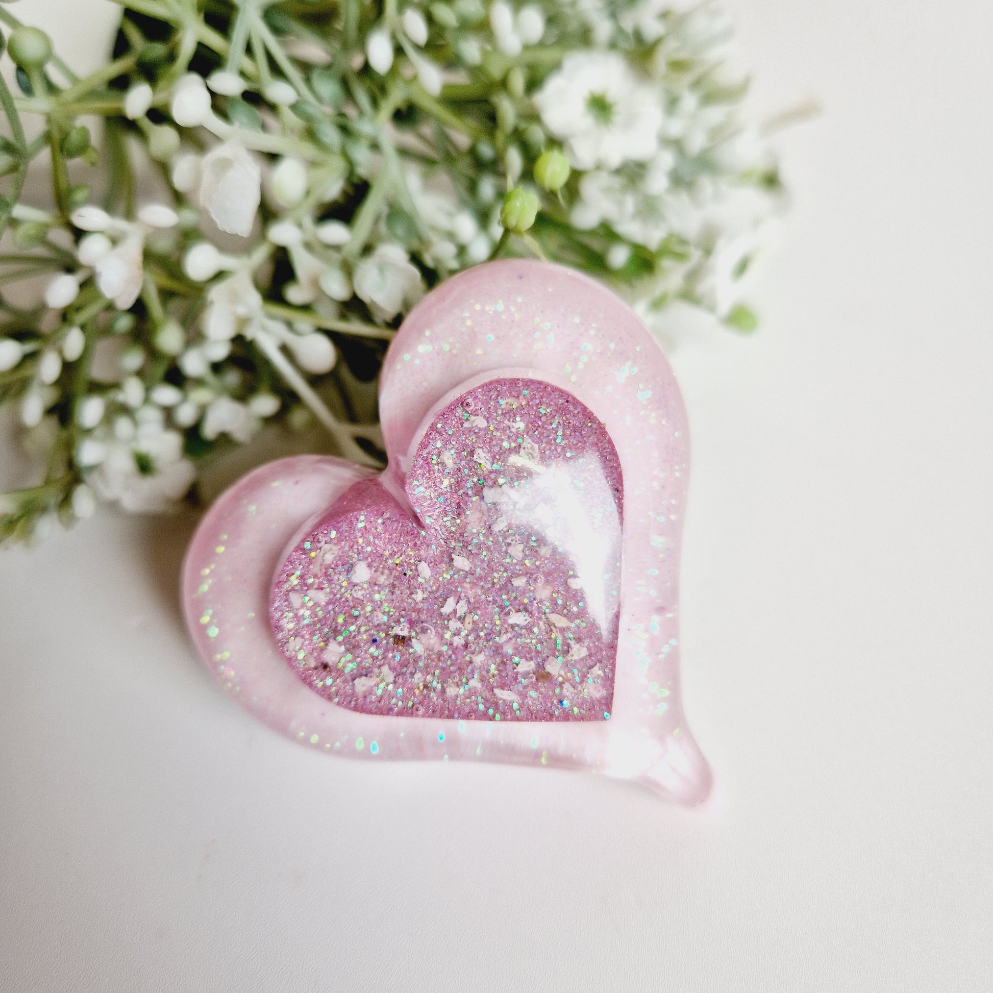 Pleas state in the notes section your colour choice and if you would like any sparkle added to your heart. These can also come with ribbon or without.