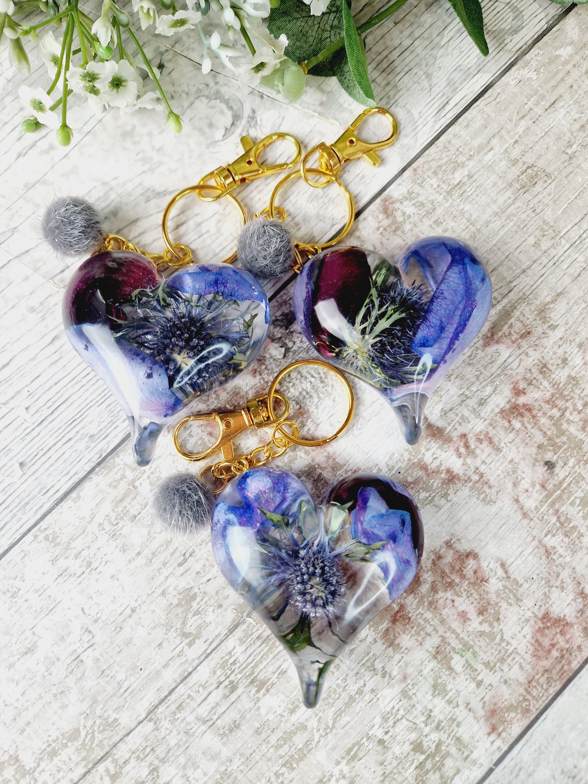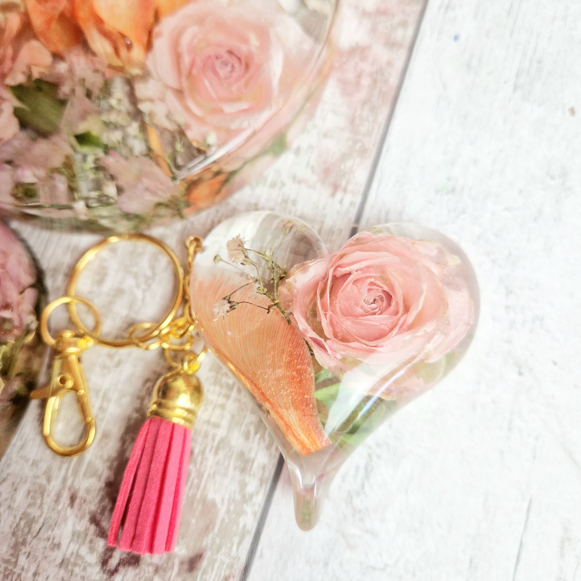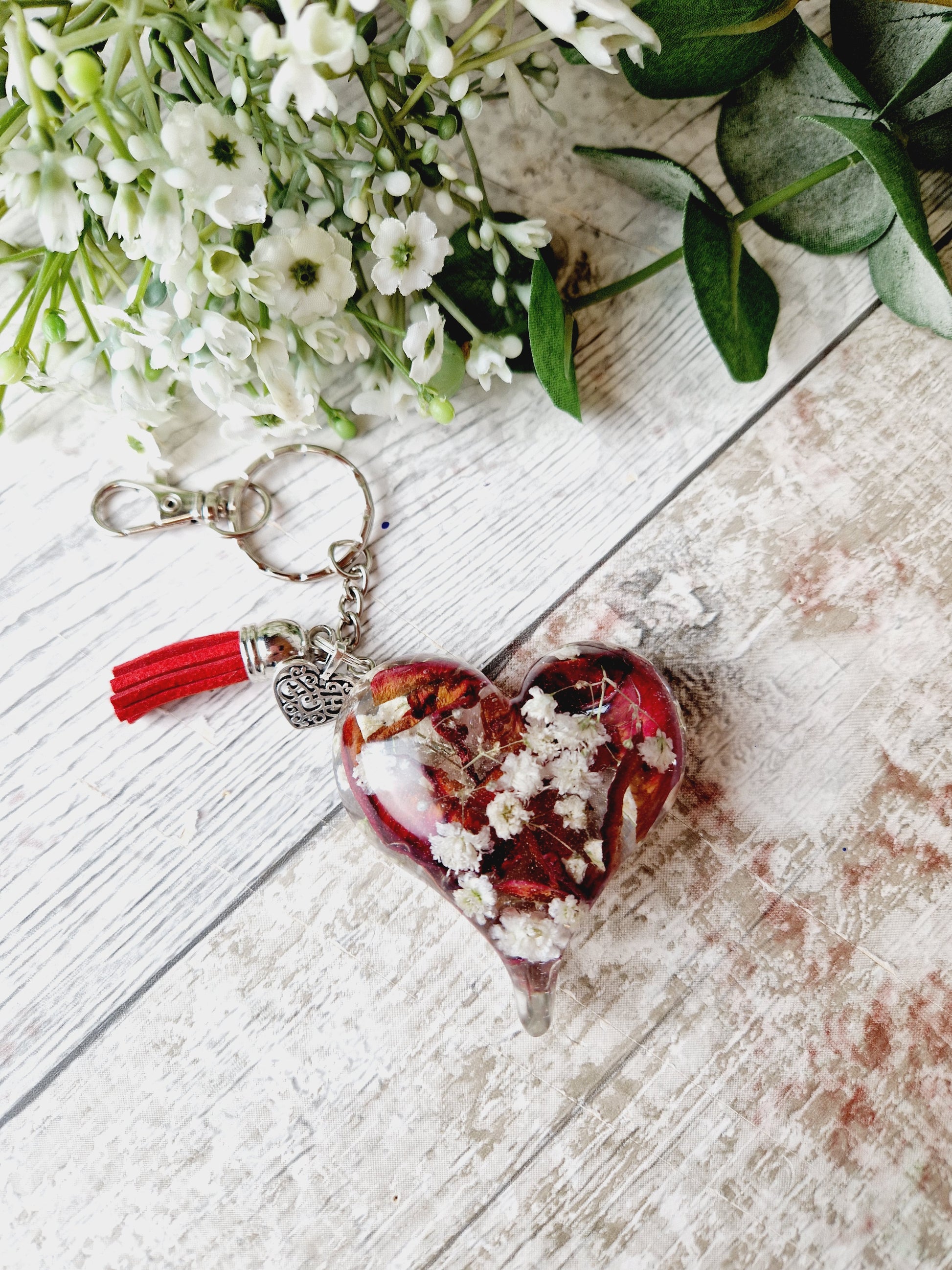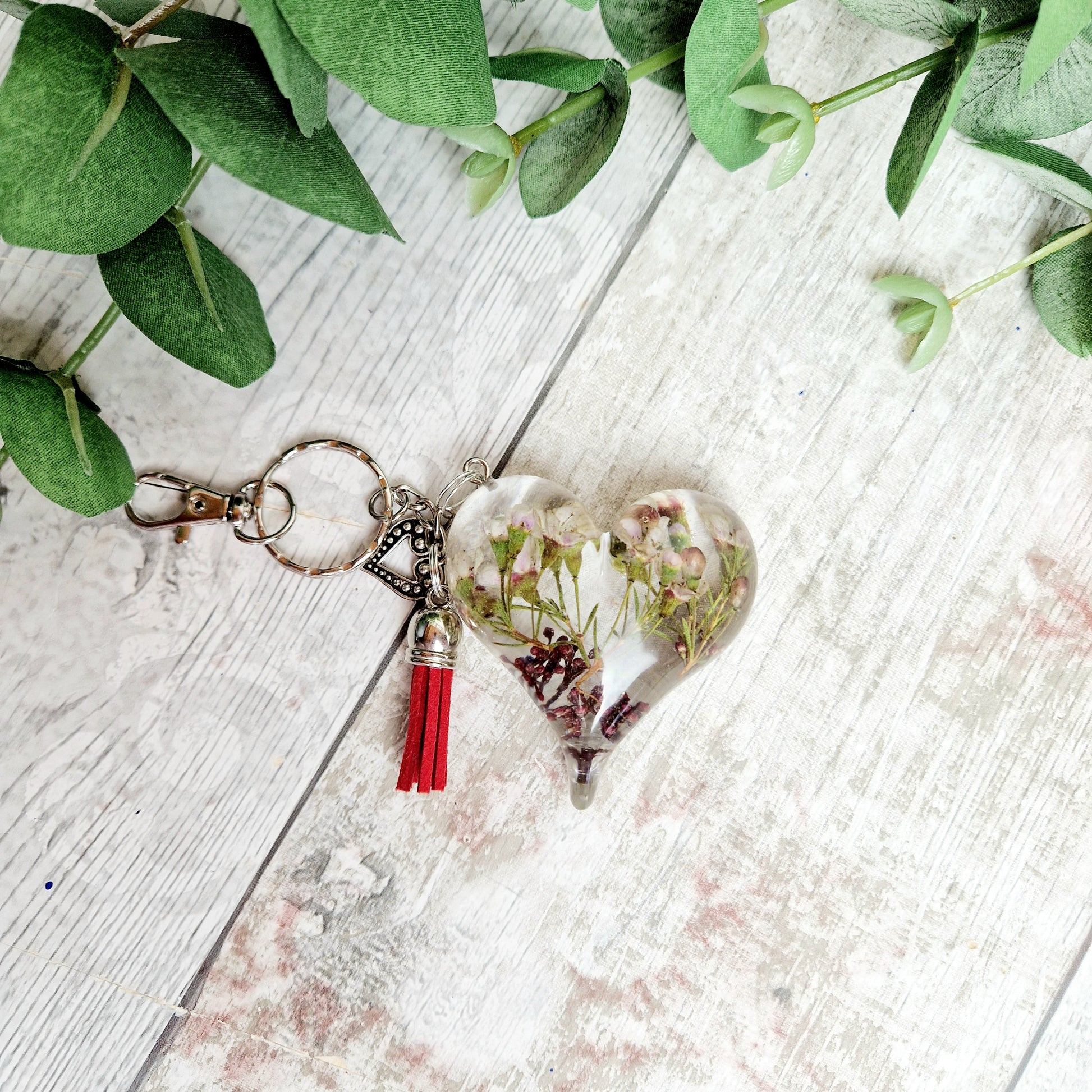 This listing is for a Puffy heart keyring preservation made from epoxy resin.