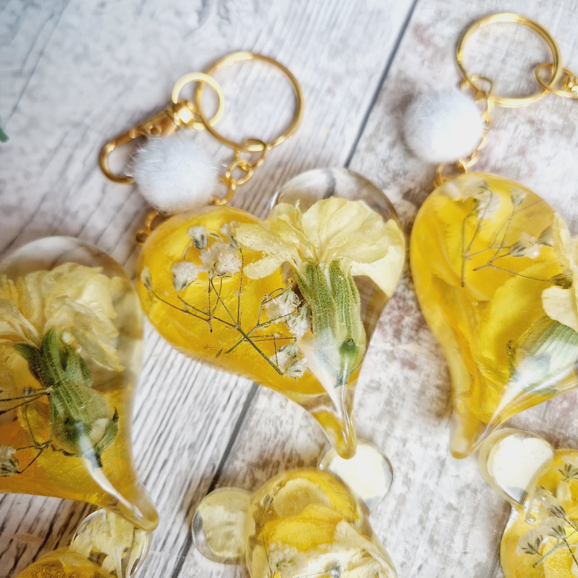 This includes the drying of your flowers so that they can be encapsulated inside the resin key ring which is roughly 5.5cm by 1.5 cm deep. I am also able to use your own dried flowers.