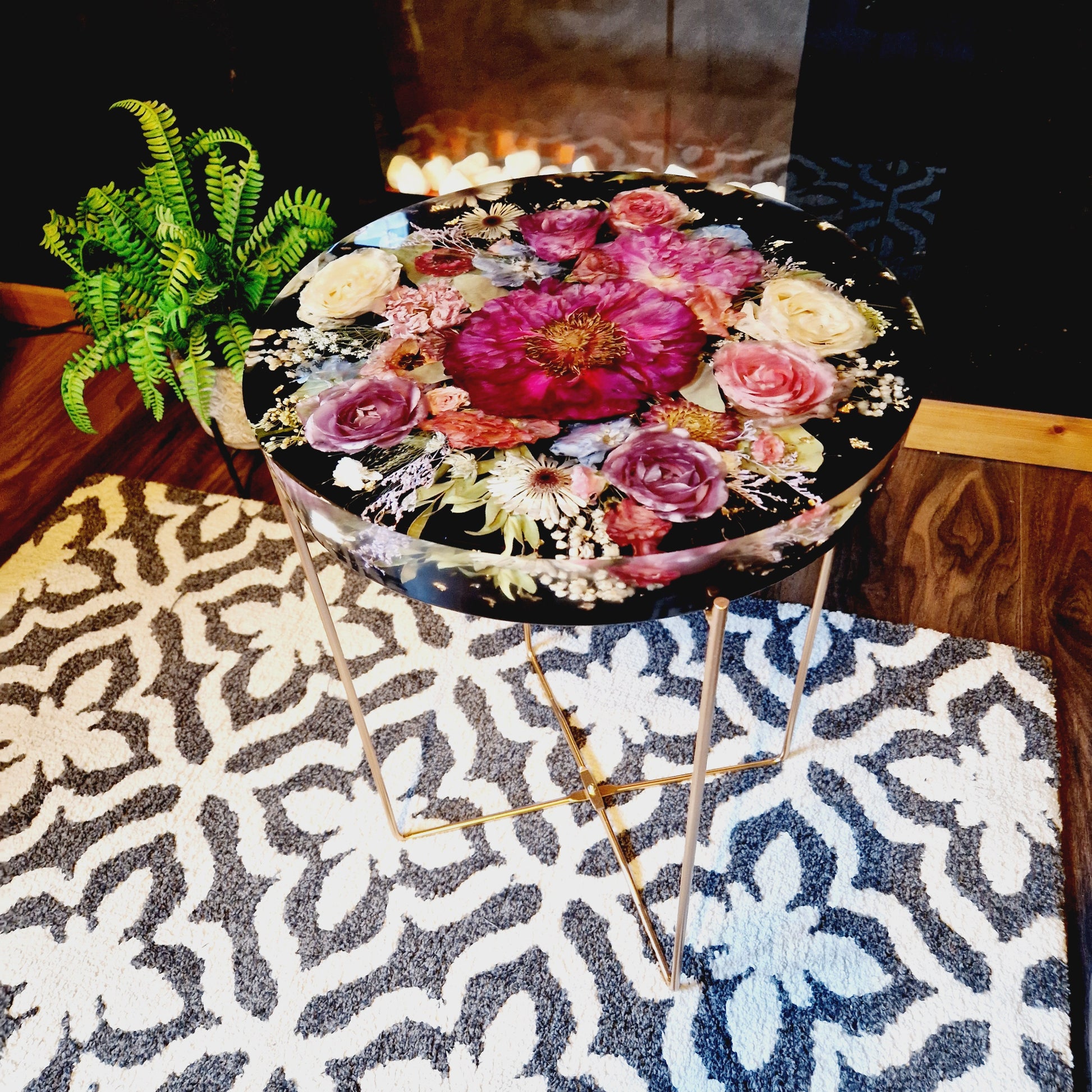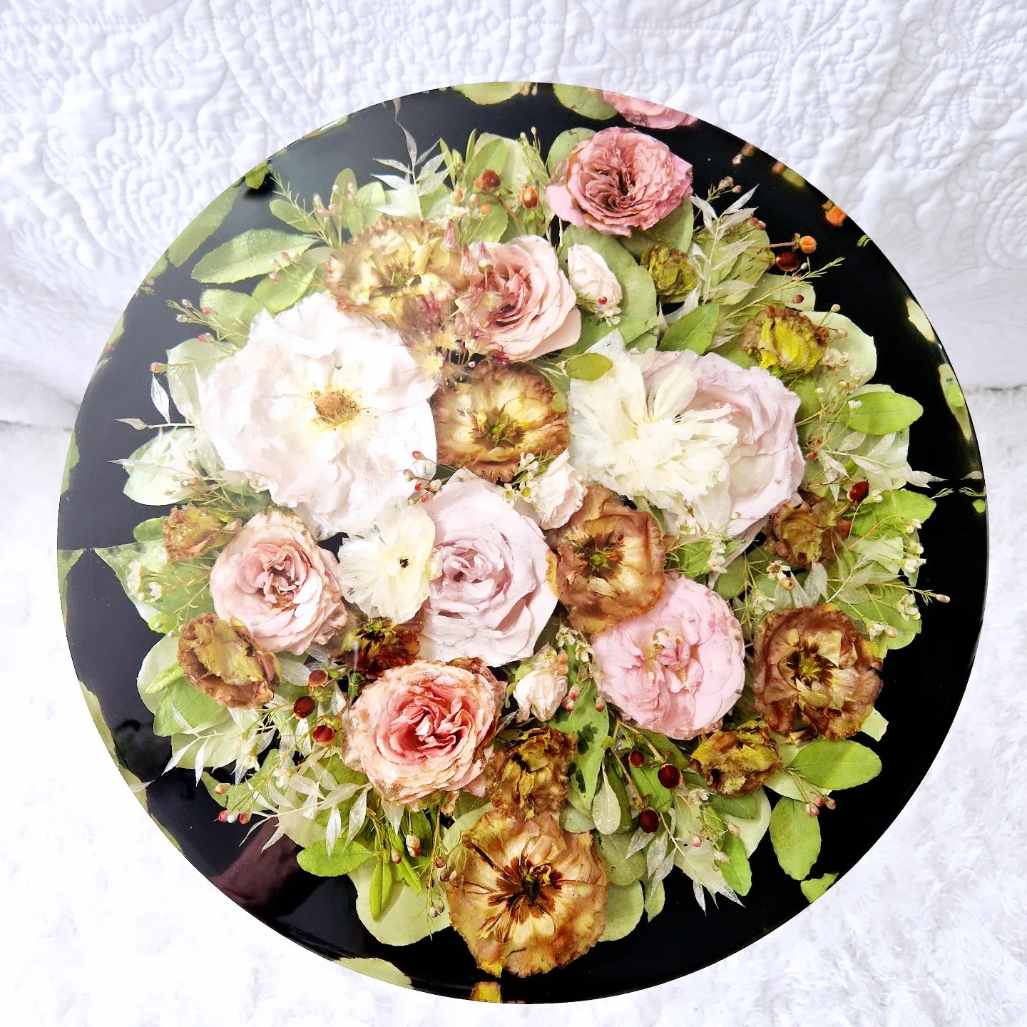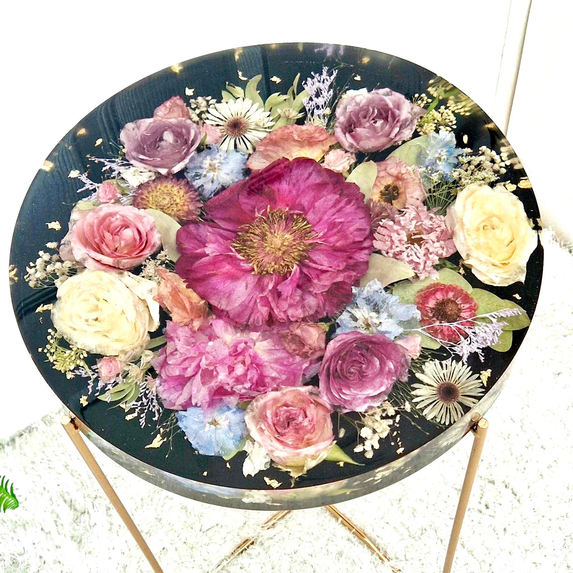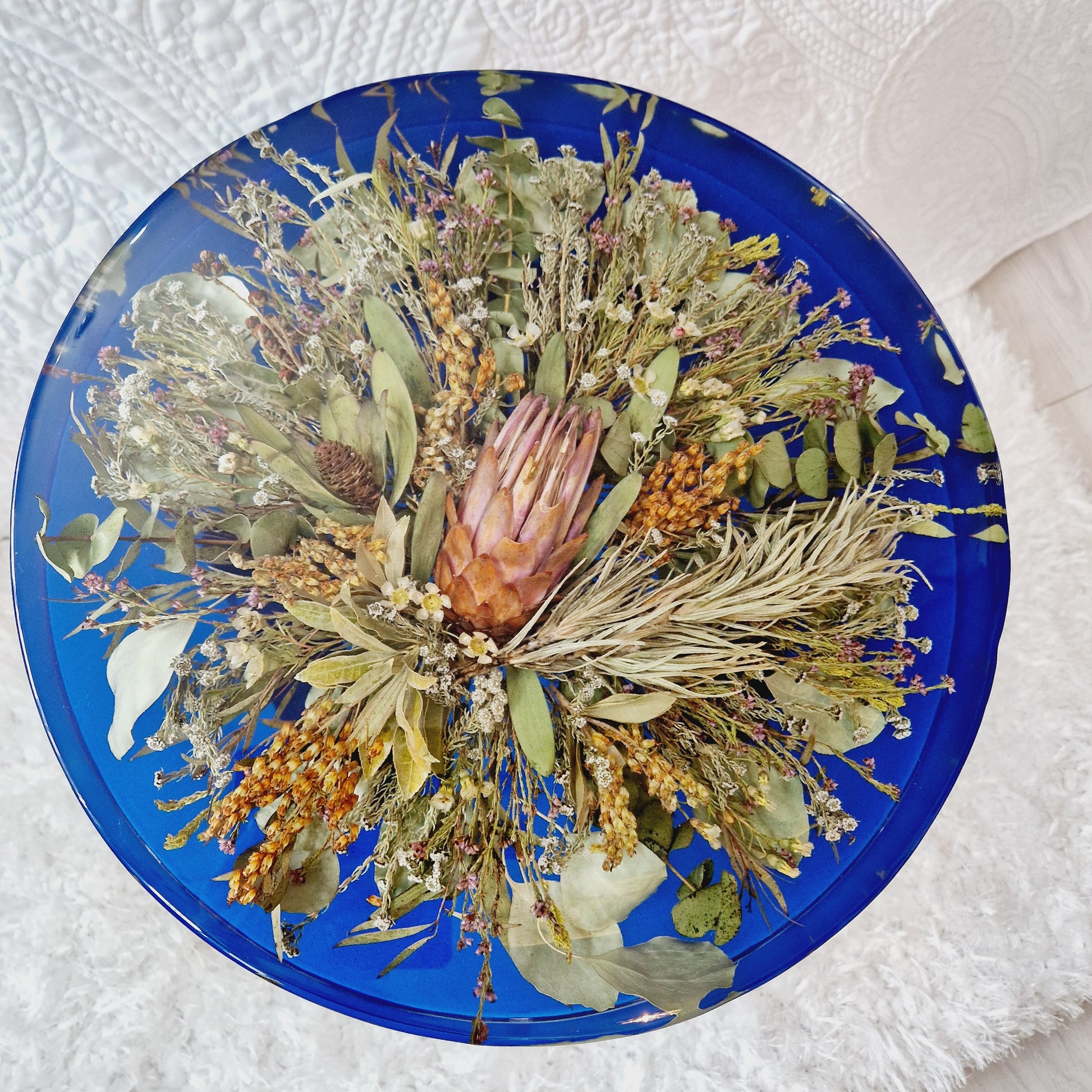 Indulge in luxury with our stunning round coffee table. This show stopper handmade piece adds a tasteful elegance to any home decor. With preserved wedding and funeral flowers, it's a bespoke work of art that will become a talking point in your space. Elevate your interior design with this exclusive piece.