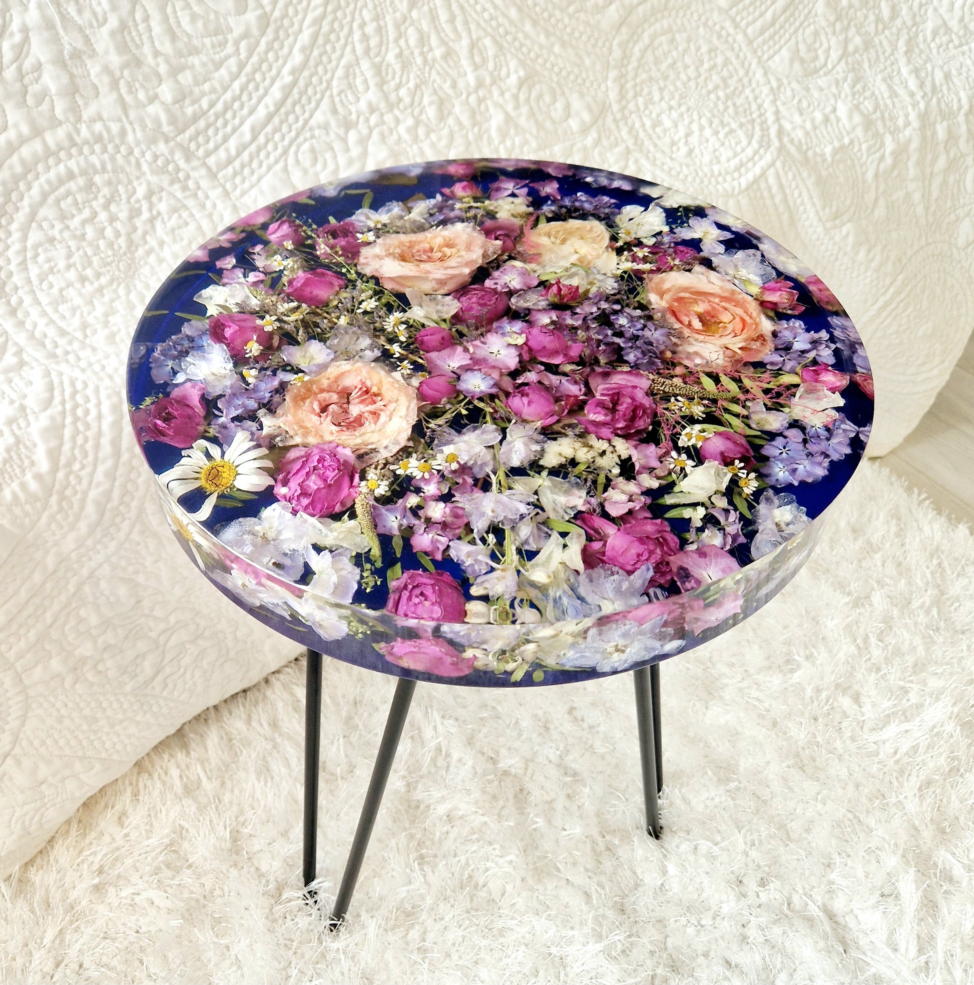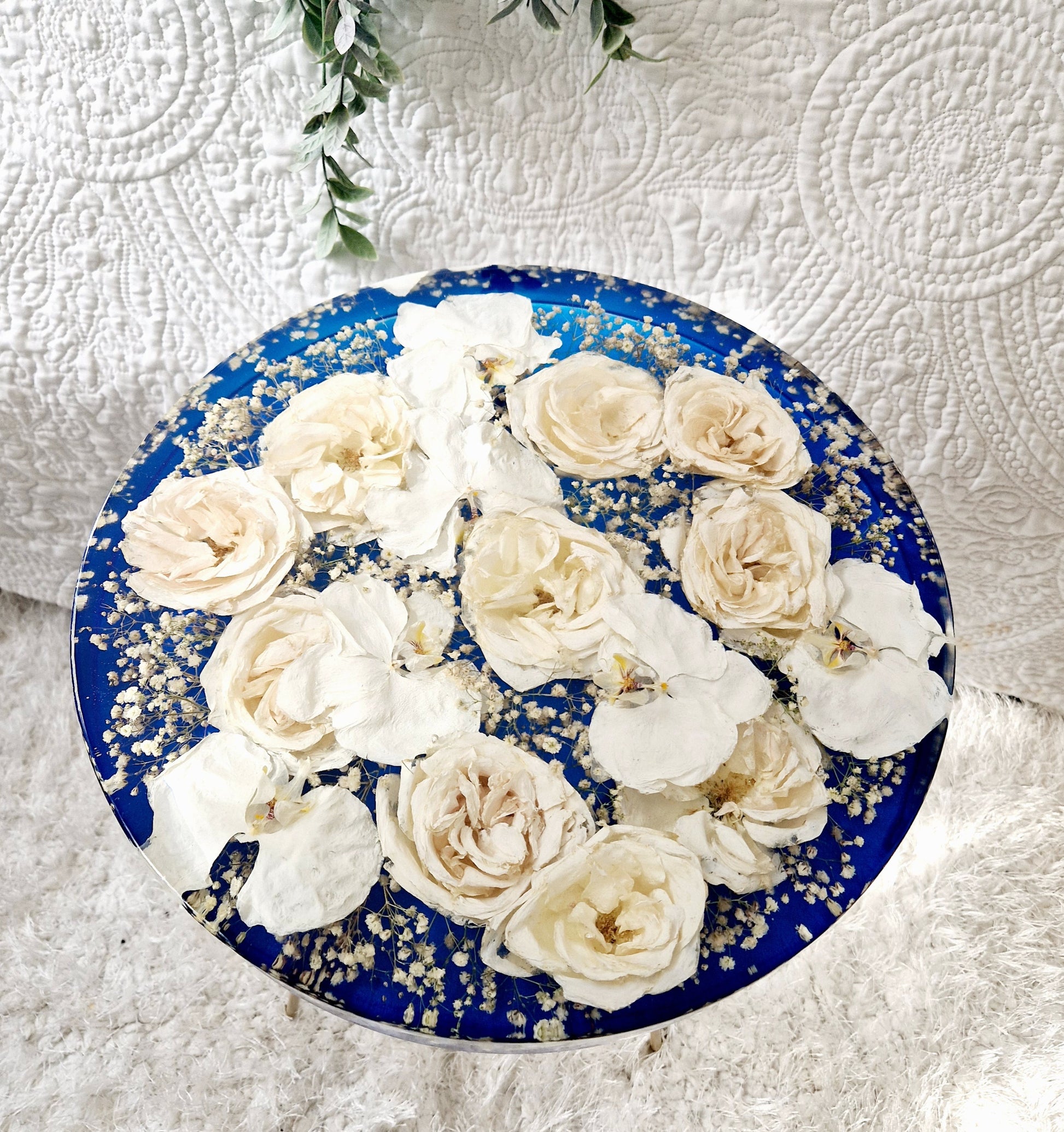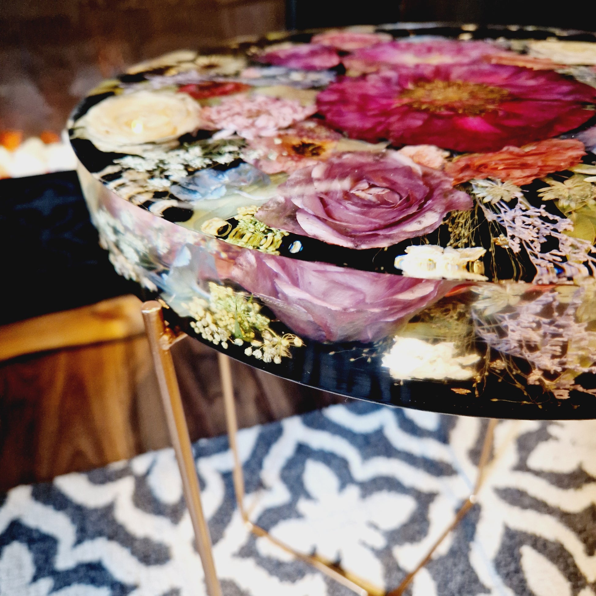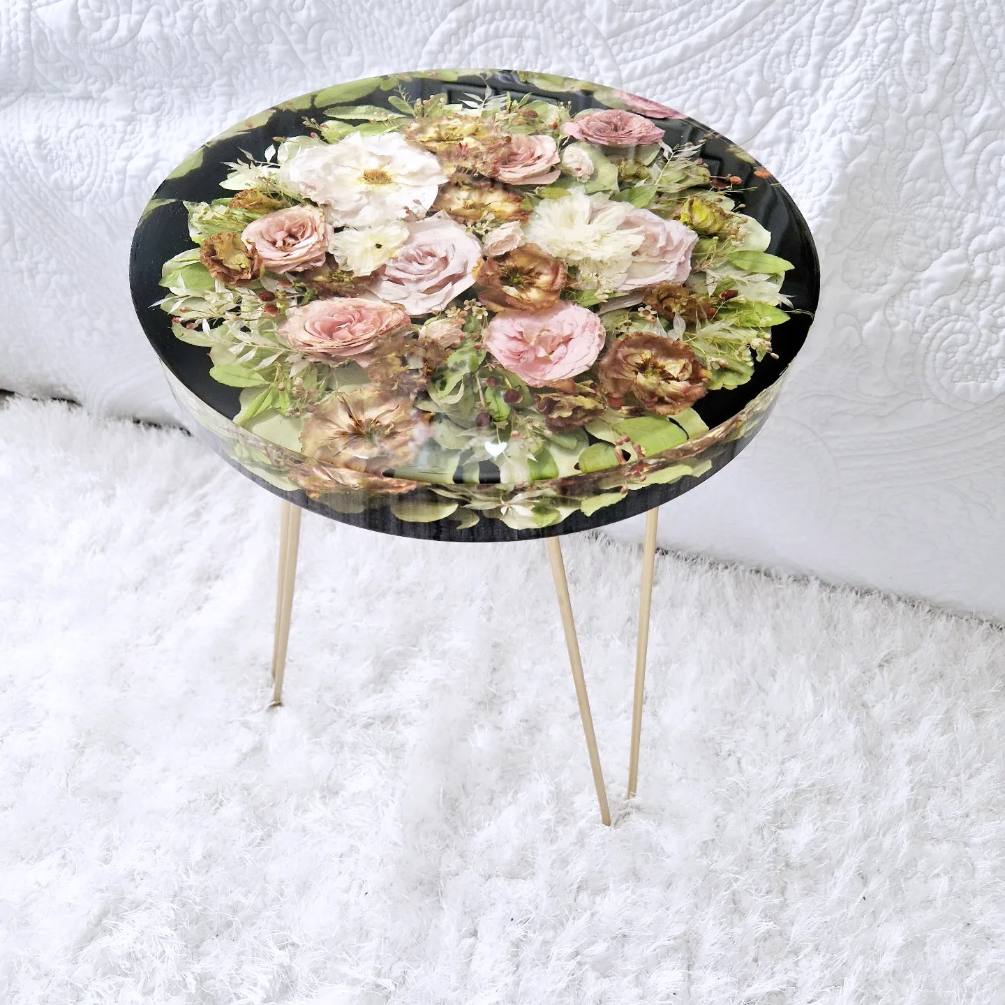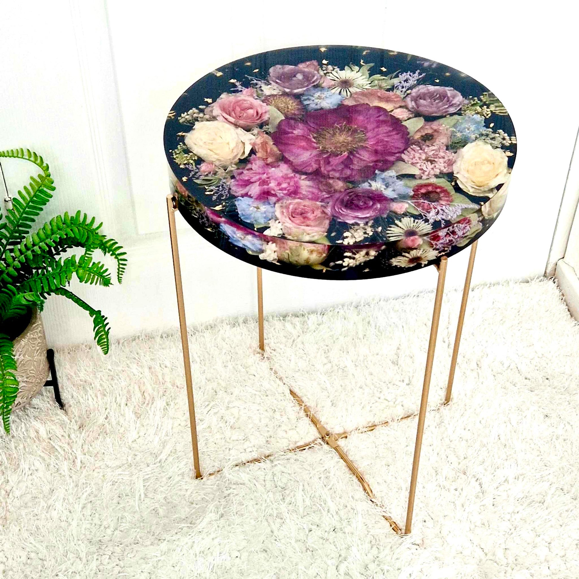 Indulge in luxury with our stunning round coffee table. This show stopper handmade piece adds a tasteful elegance to any home decor. With preserved wedding and funeral flowers, it's a bespoke work of art that will become a talking point in your space. Elevate your interior design with this exclusive piece.