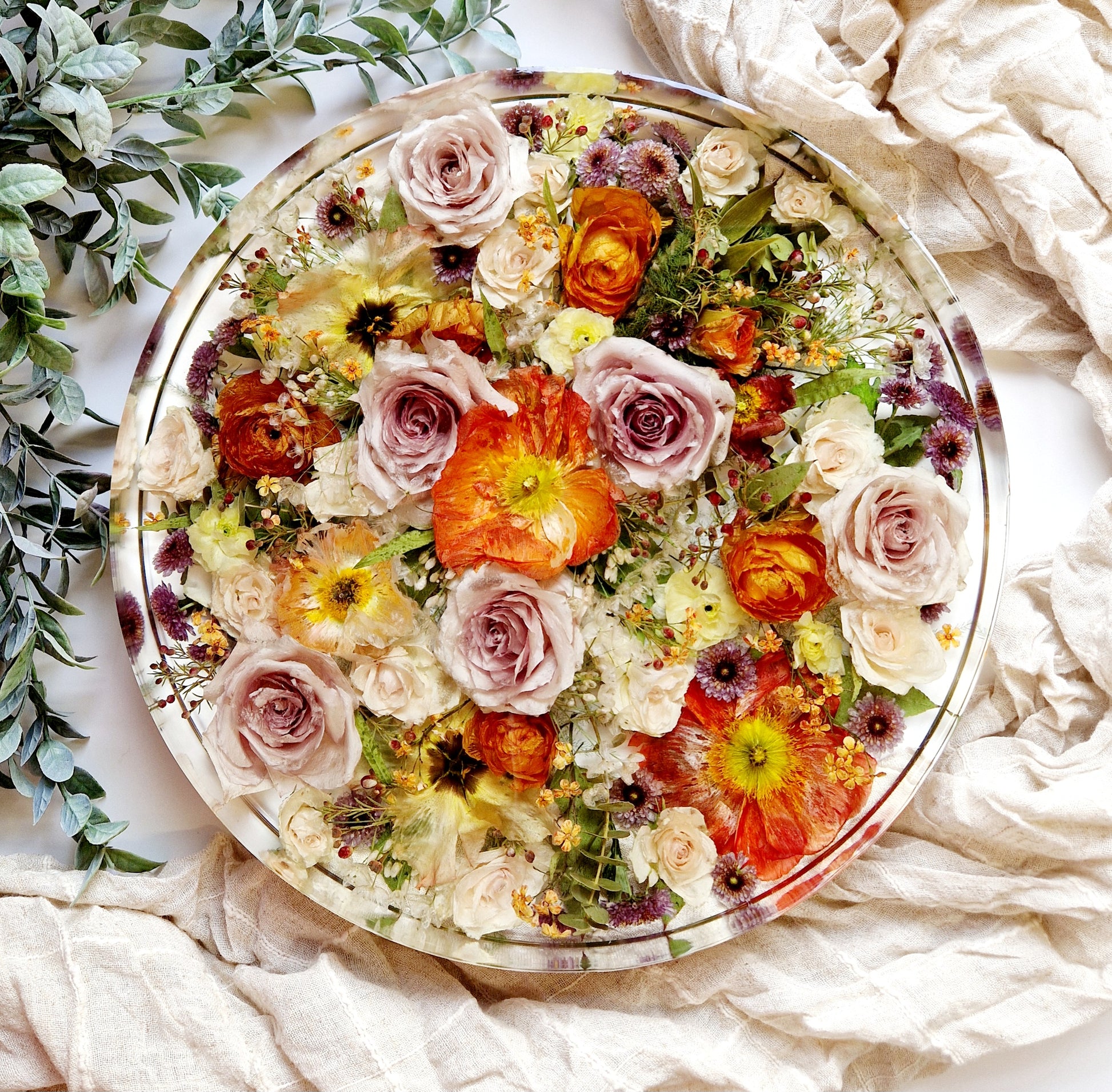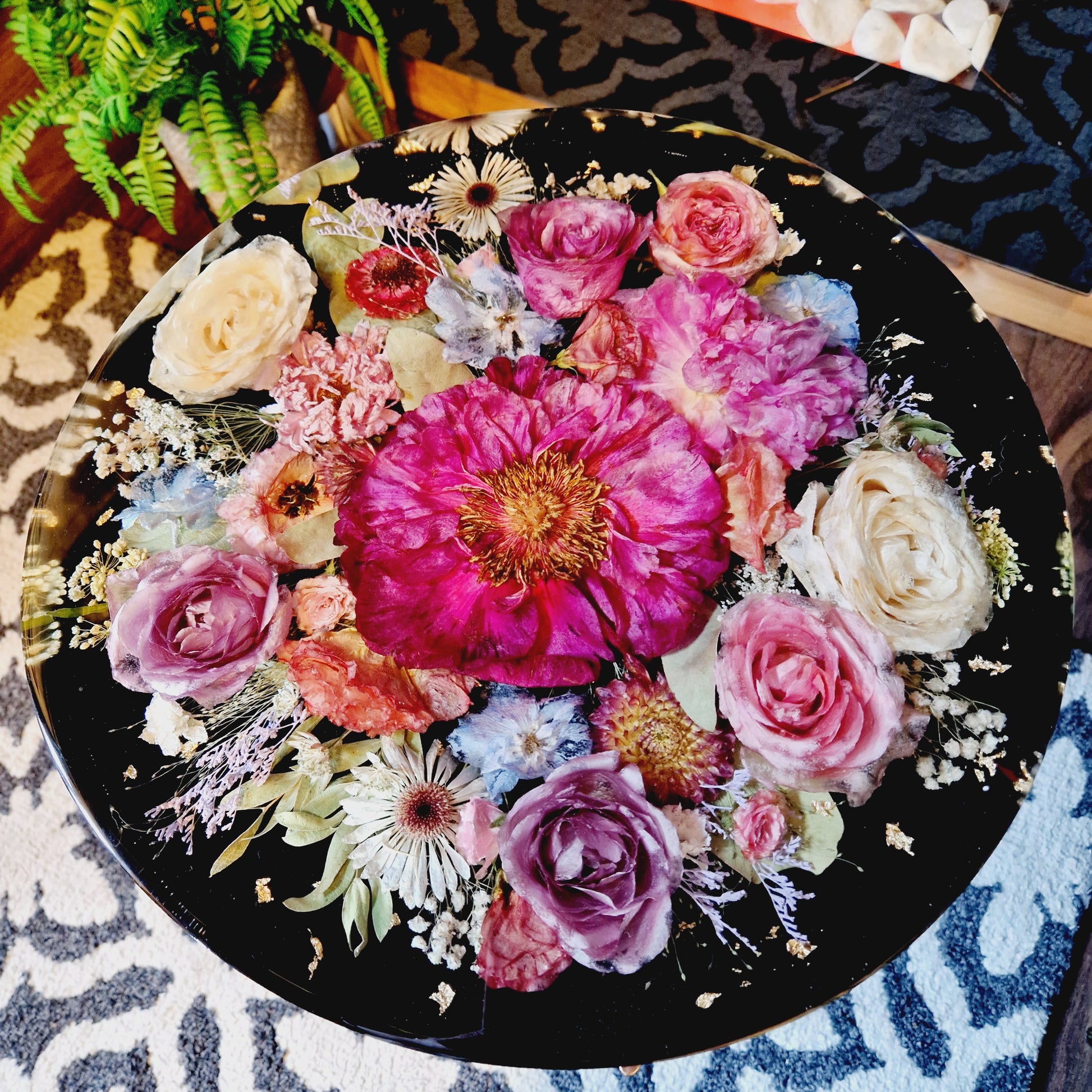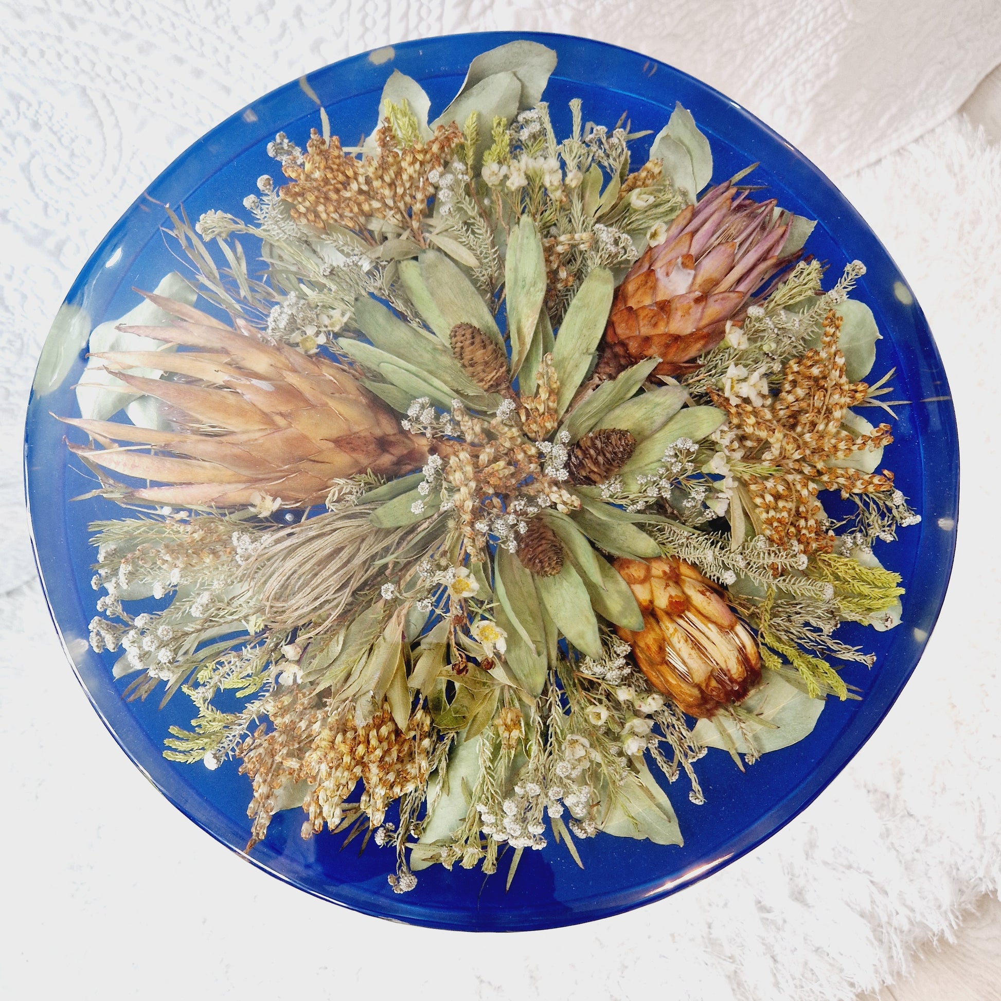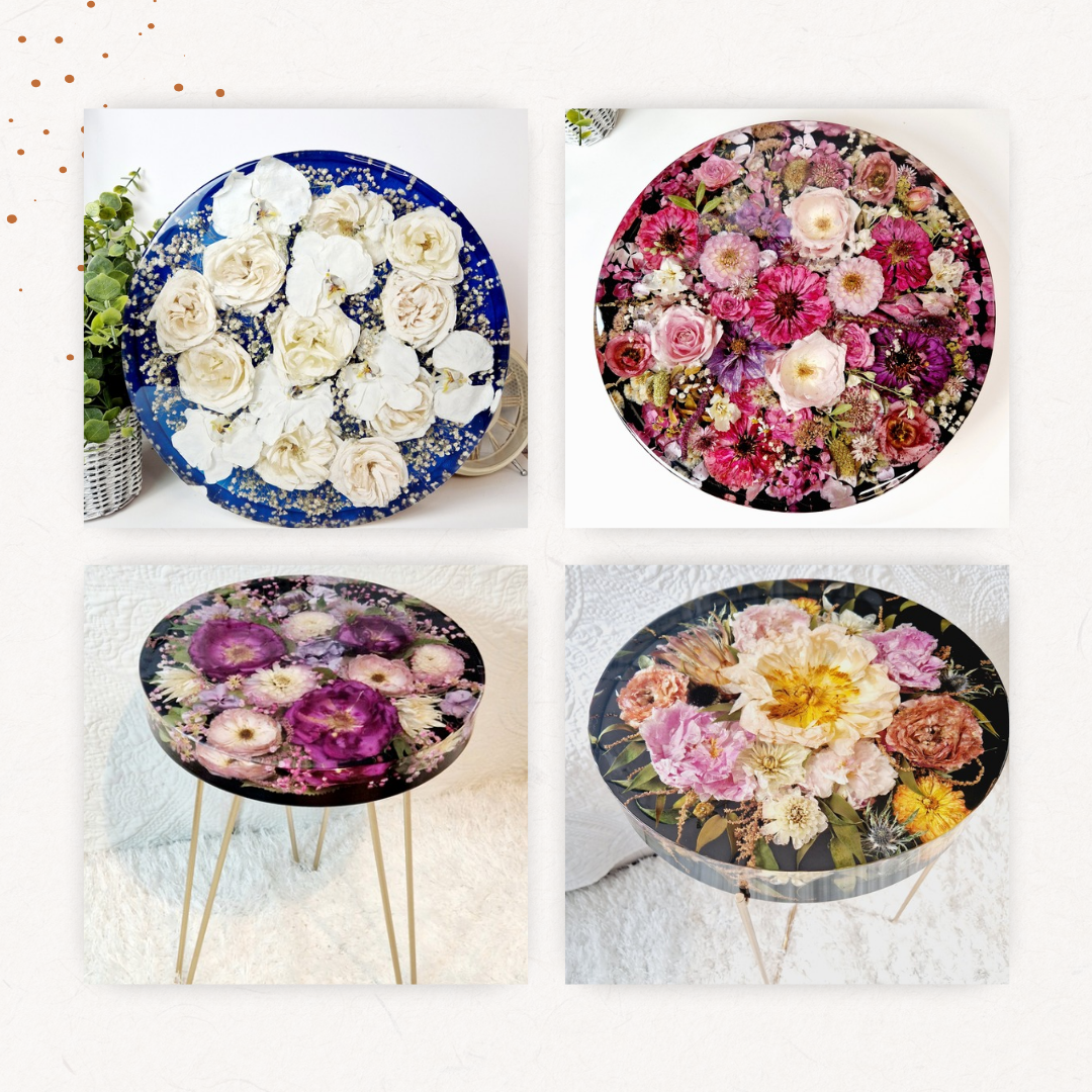 Indulge in luxury with our stunning round coffee table. This show stopper handmade piece adds a tasteful elegance to any home decor. With preserved wedding and funeral flowers, it's a bespoke work of art that will become a talking point in your space. Elevate your interior design with this exclusive piece.