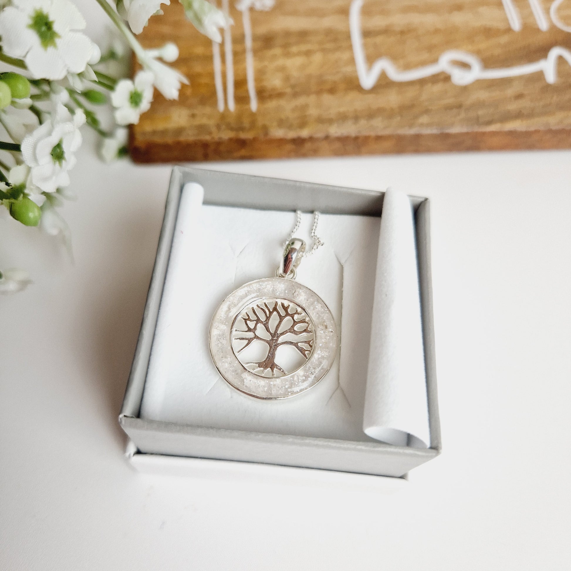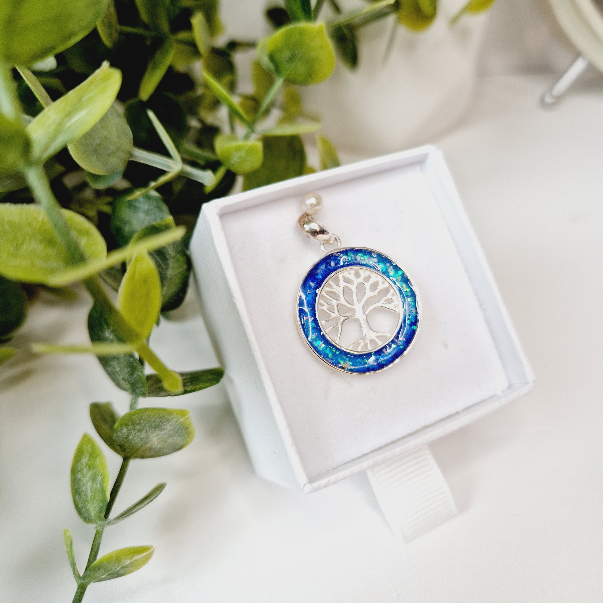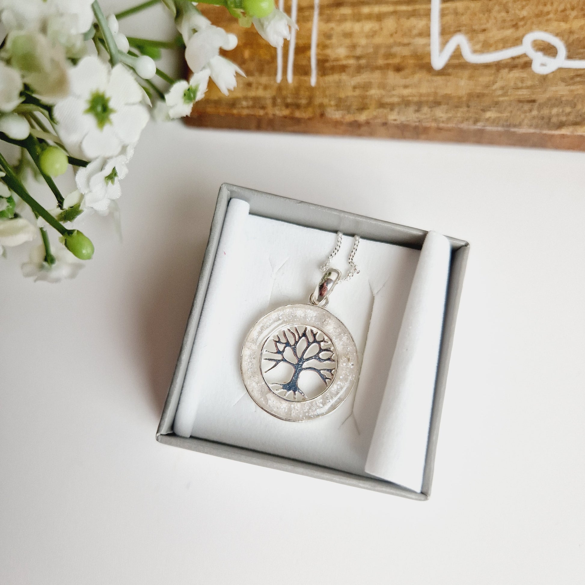 This exquisite Tree of Life pendant is exquisitely crafted in sterling silver, and can be customised to feature the ashes of a cherished loved one, or a lock of hair. A truly unique way to honour their memory, this bespoke pendant is available in a variety of colours to suit every style.