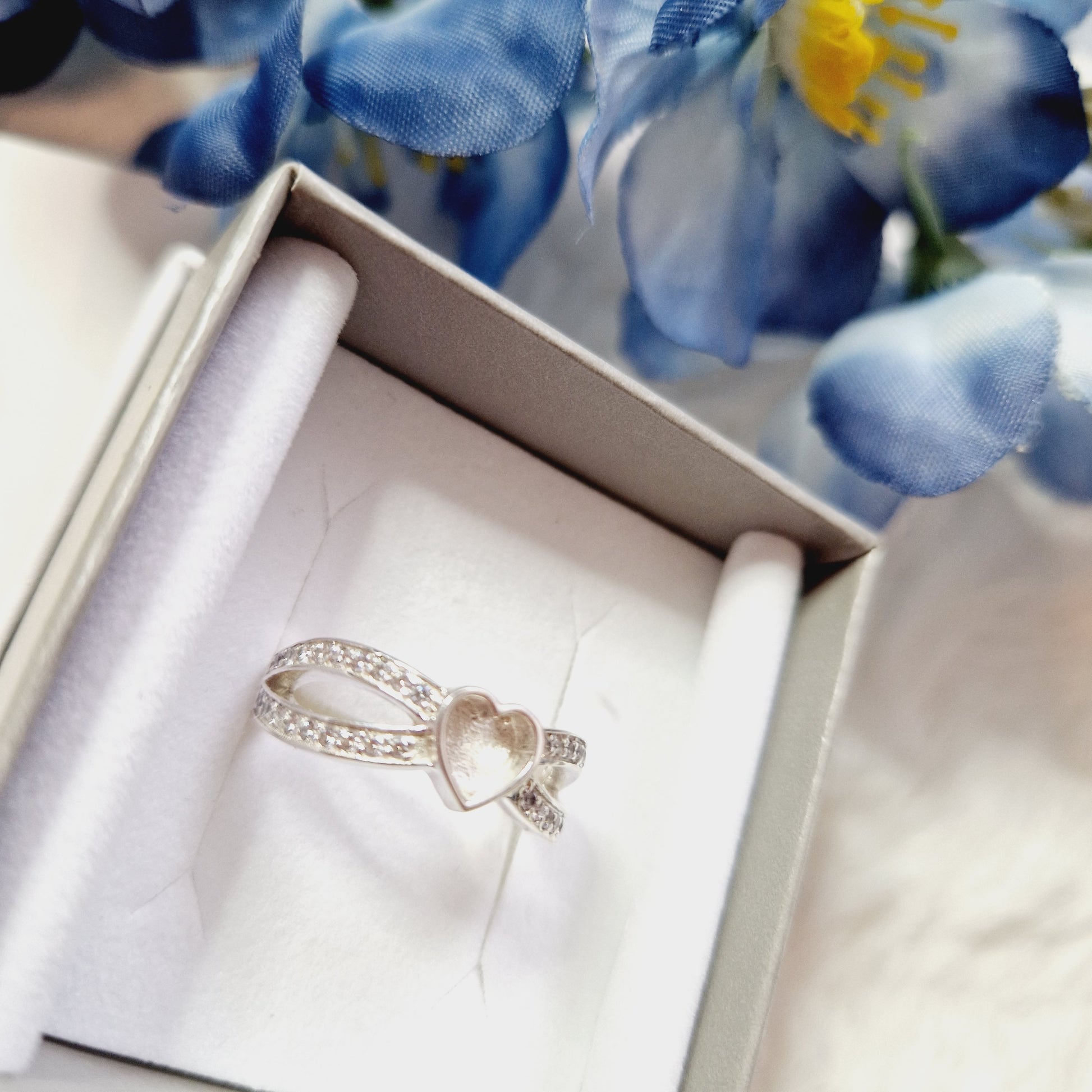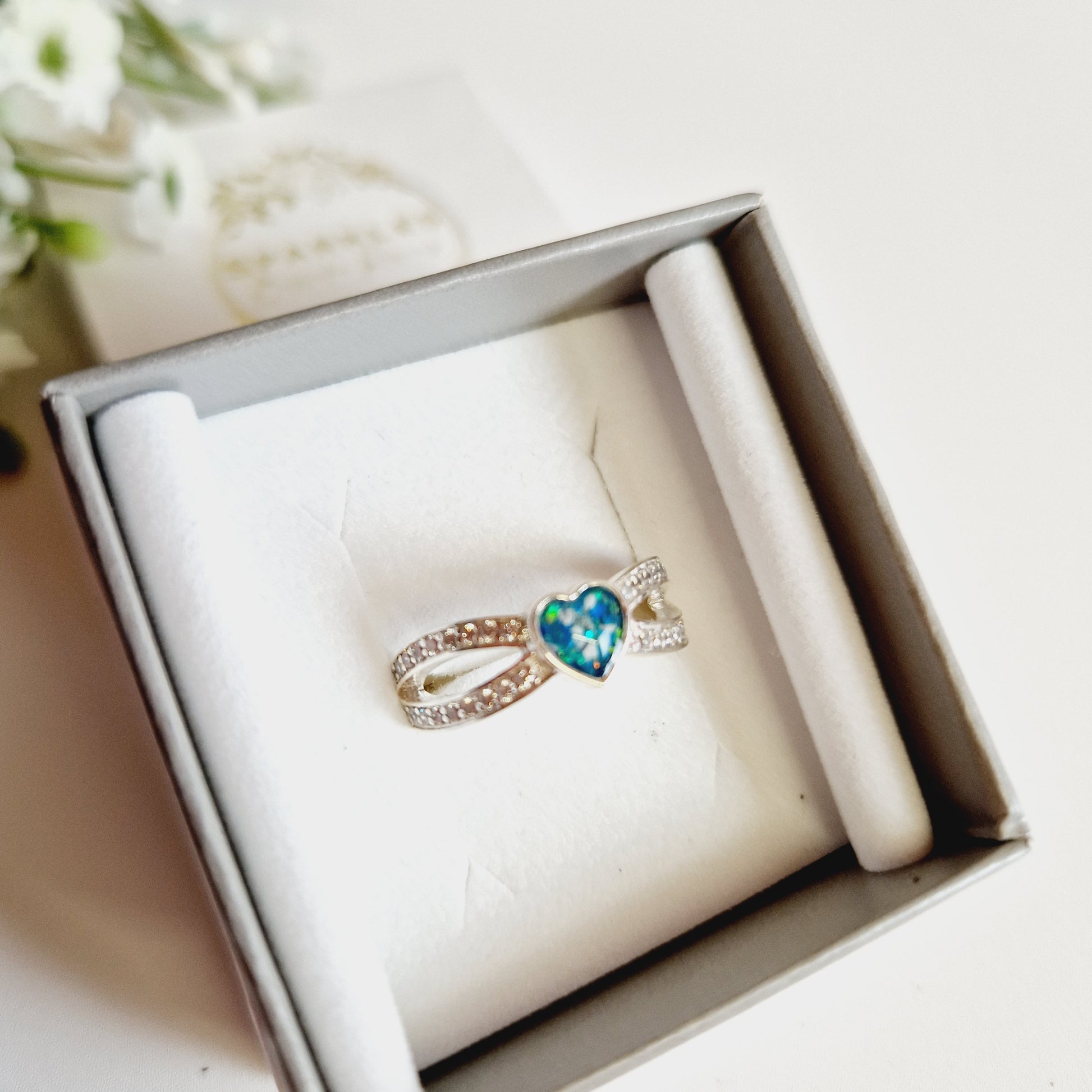This exquisite Criss Cross Heart Ring is crafted from sterling silver and decorated with a beautiful crystal small heart, making it a sophisticated statement piece that is sure to turn heads. It is suitable for ash inclusion, giving it an extra special, emotional quality. Elegance and sentimentality meet in this timeless beauty.