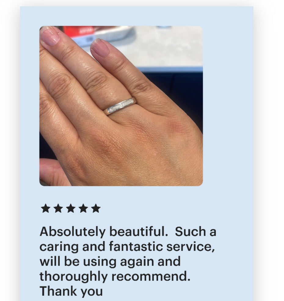 Crafted with sterling silver, this front facing rounded band ring is the perfect way to remember and honor a loved one. Its simple design allows for ash inclusion, making it a beautiful, tasteful way to honor the memory of a beloved.