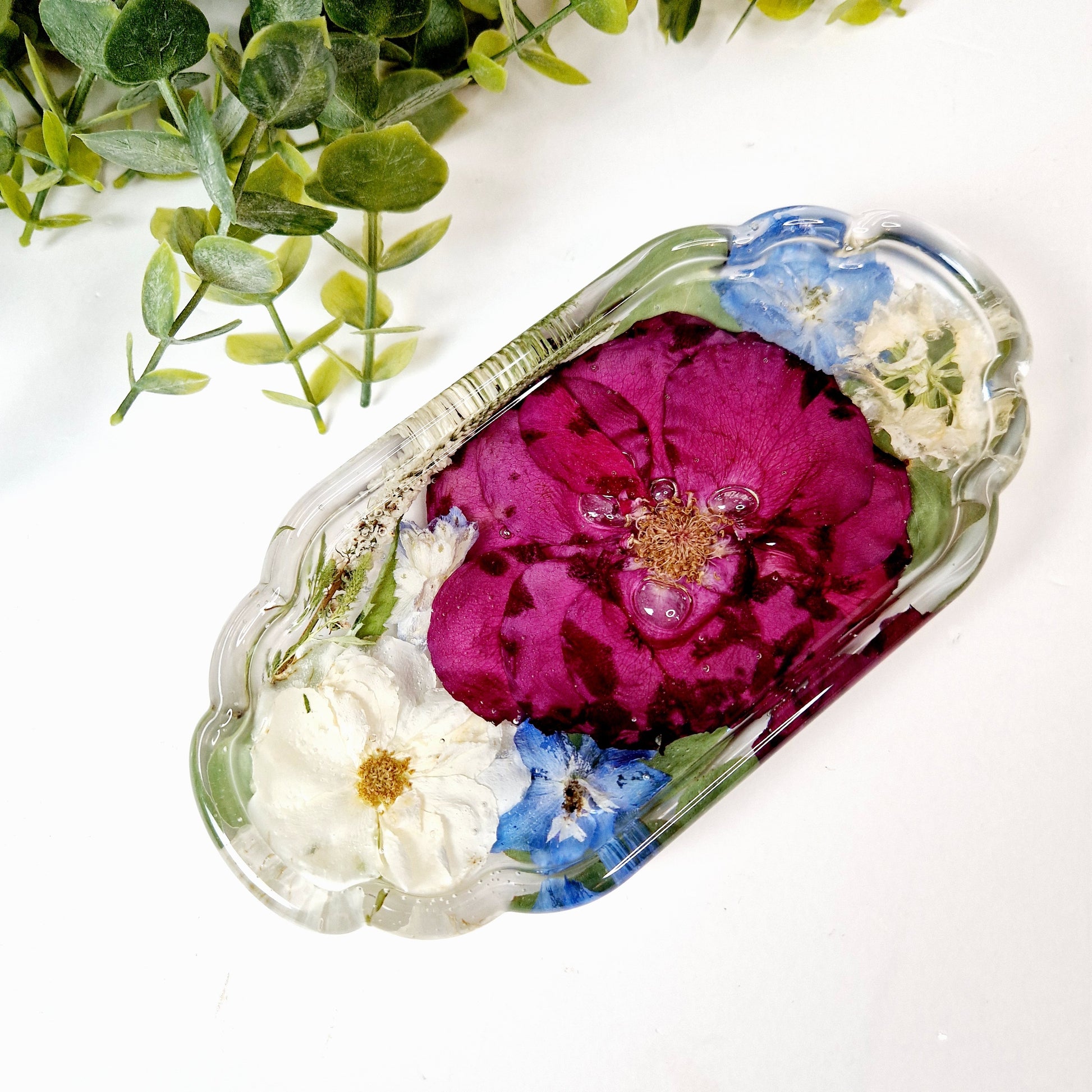 Indulge in the luxurious beauty of our Victorian style oval trinket tray. Hand-sculpted with intricate detailing, this deep tray is perfect for showcasing your pressed flowers. Elevate your decor with this timeless piece of art.
